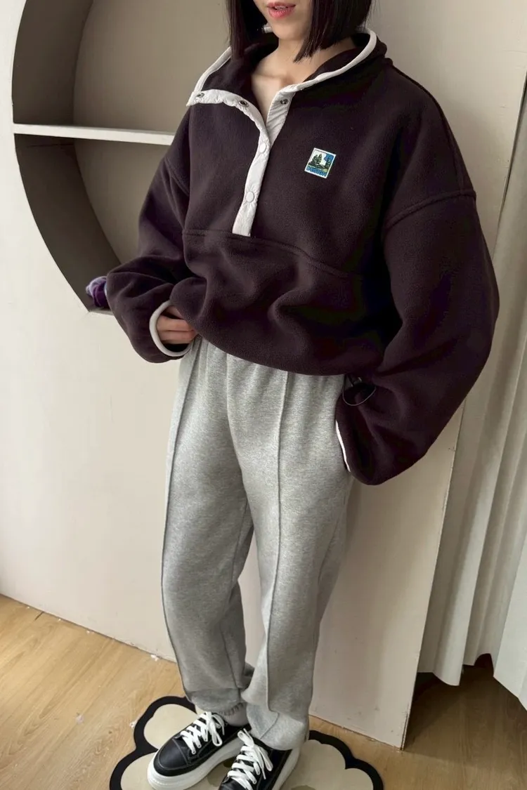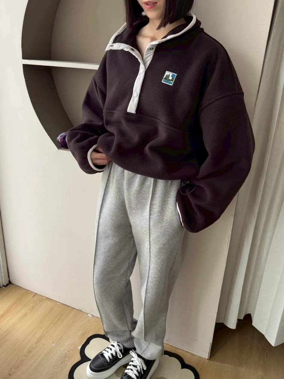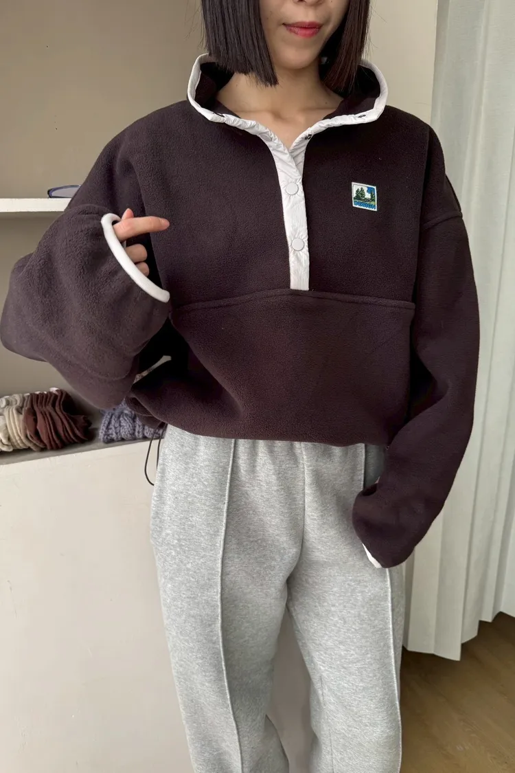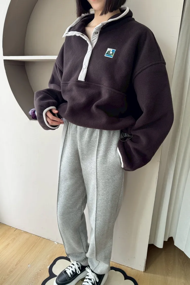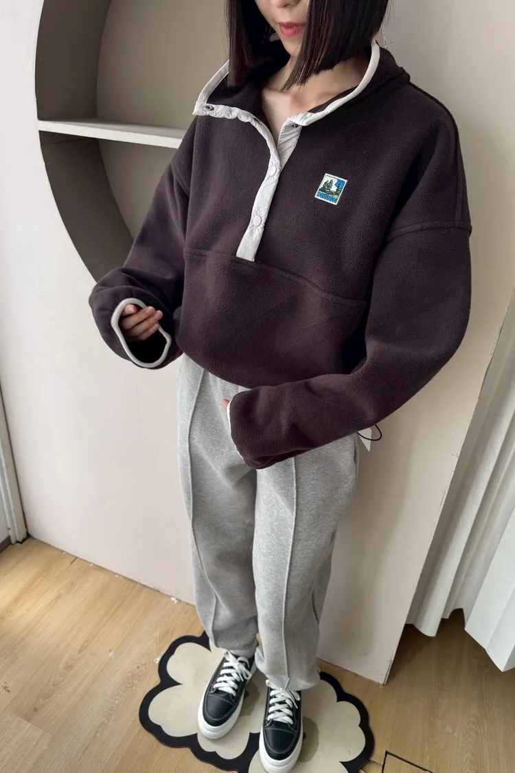 搖粒絨加厚衛衣立領帶韓標抽繩加厚衛衣衛衣