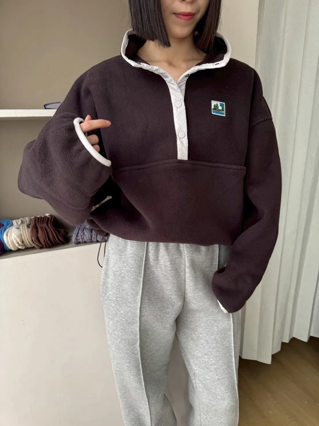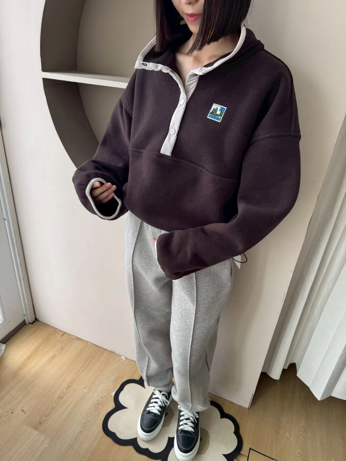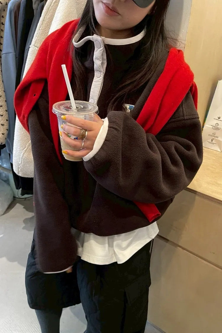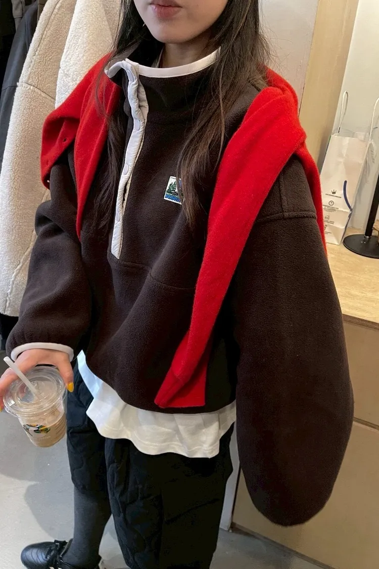 搖粒絨加厚衛衣立領帶韓標抽繩加厚衛衣衛衣