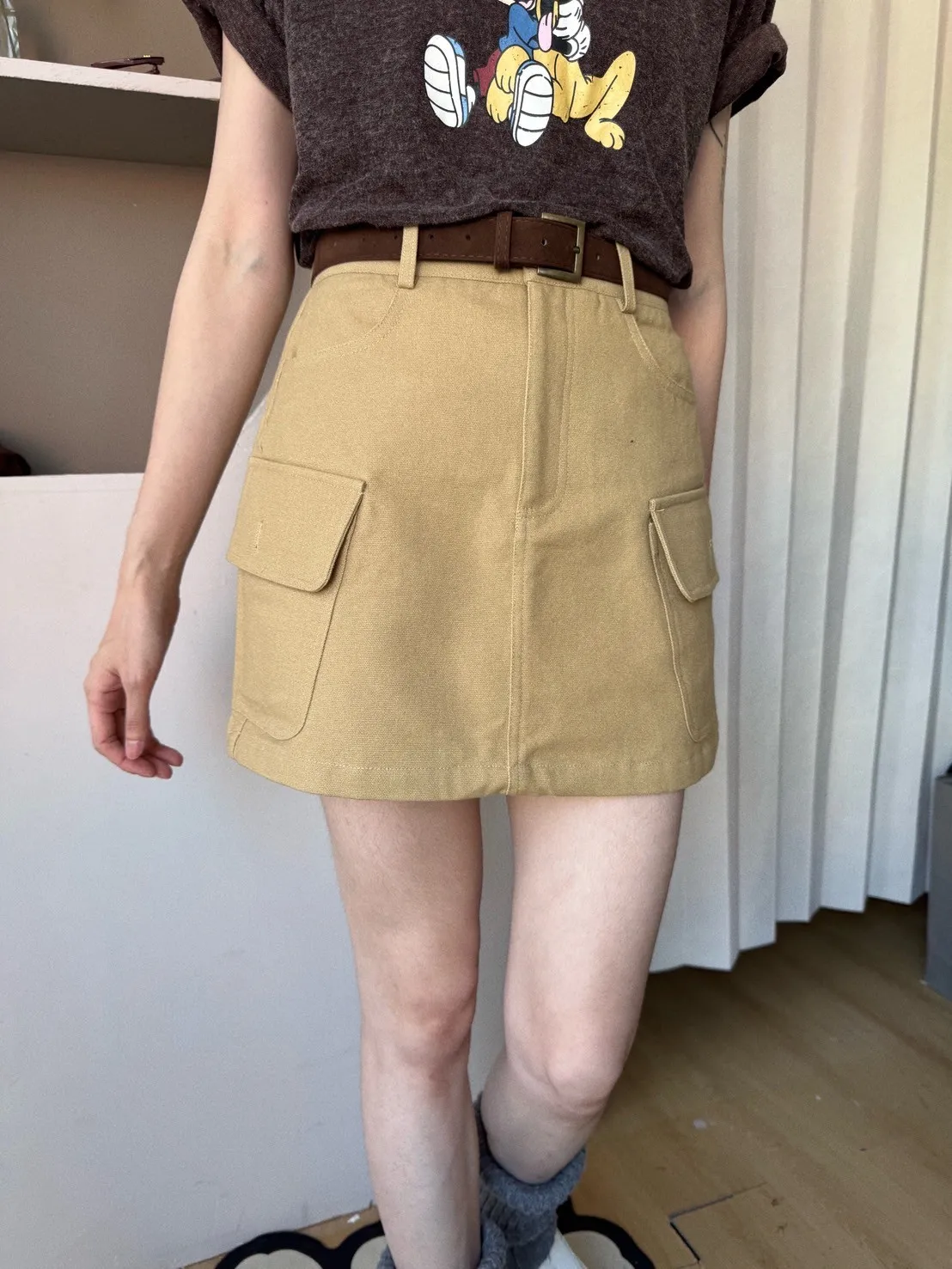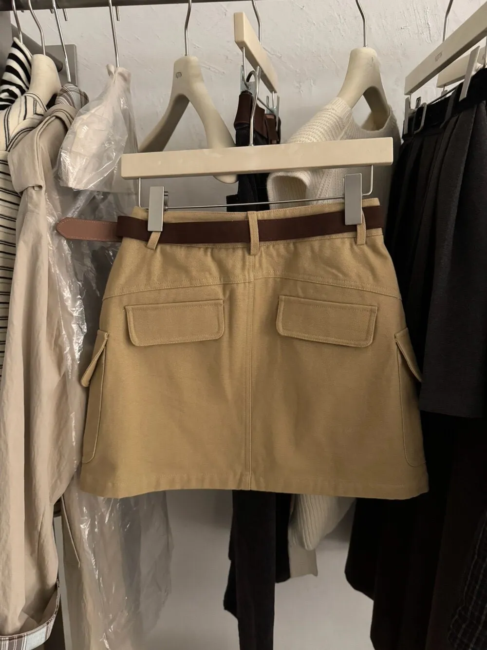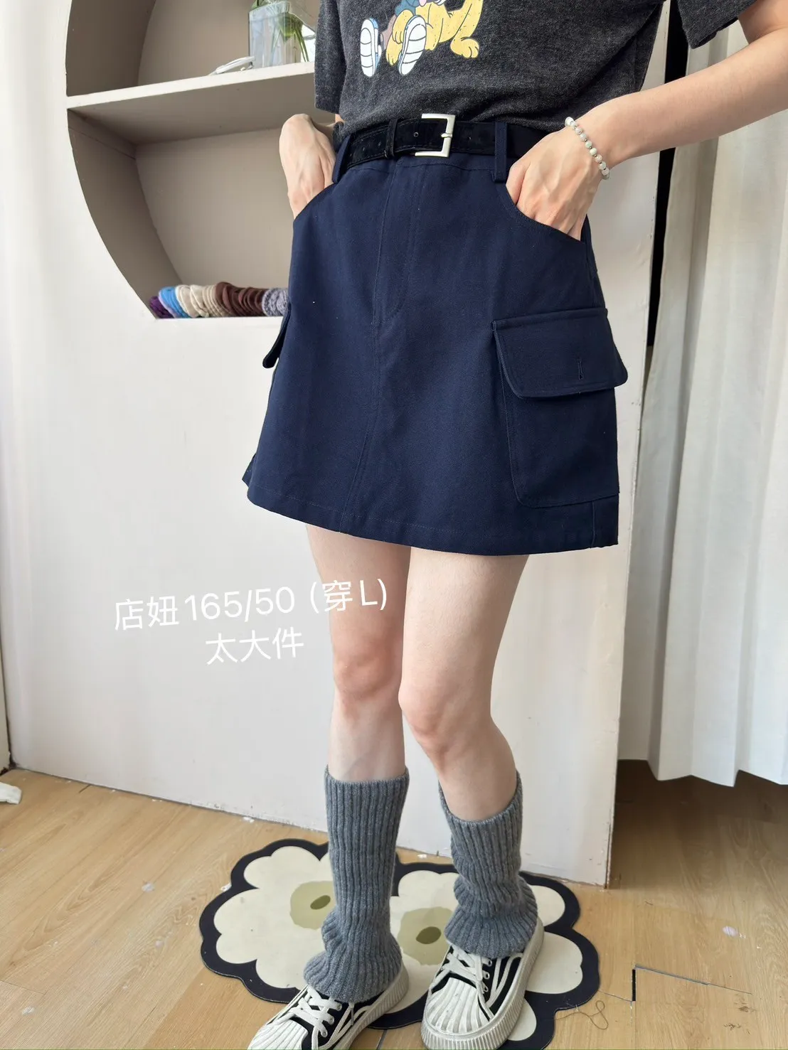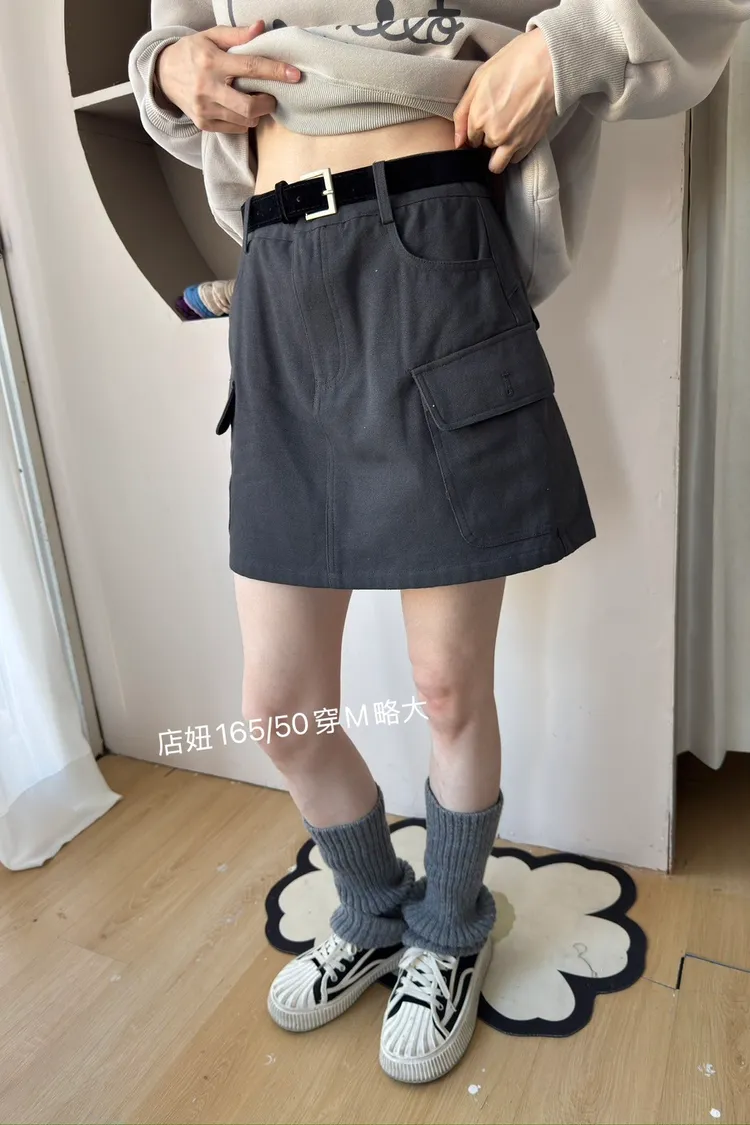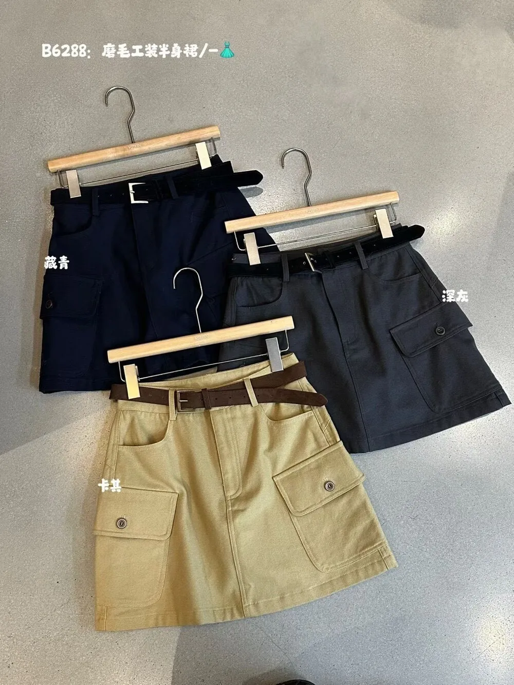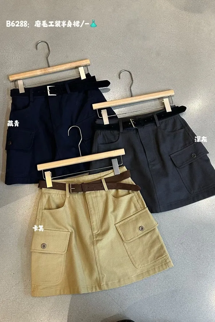 miu系工裝風磨毛高腰甜酷半身裙(配腰帶)
