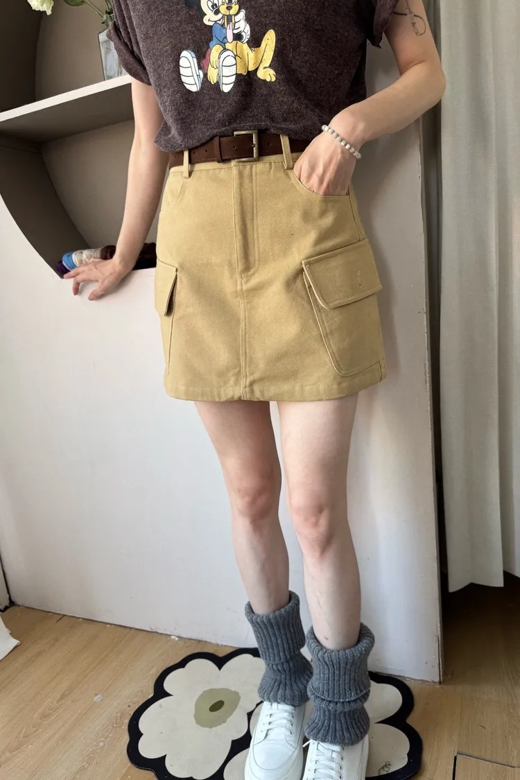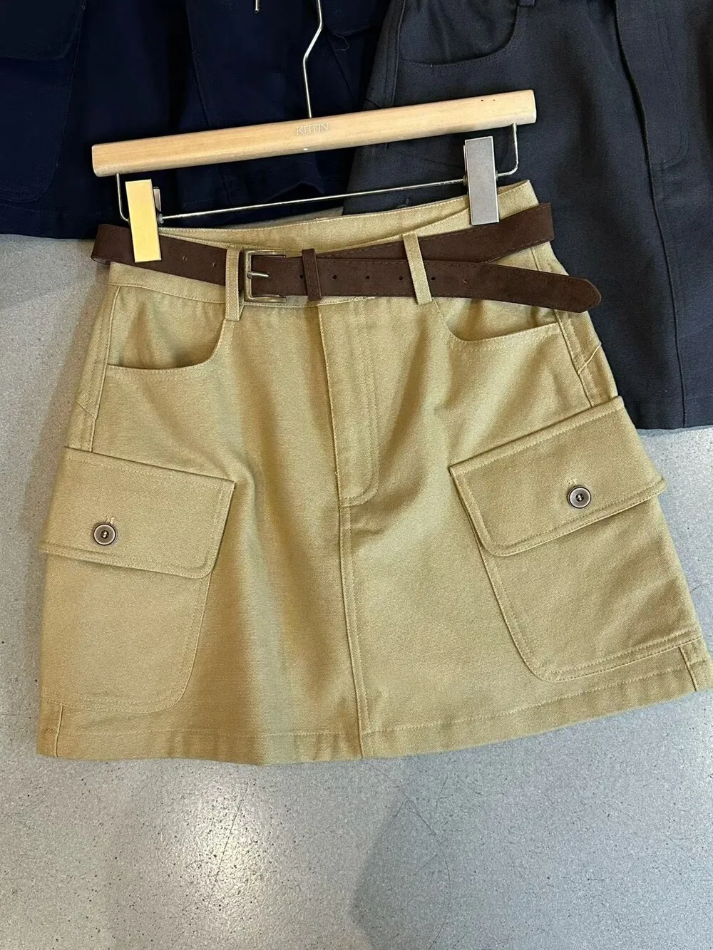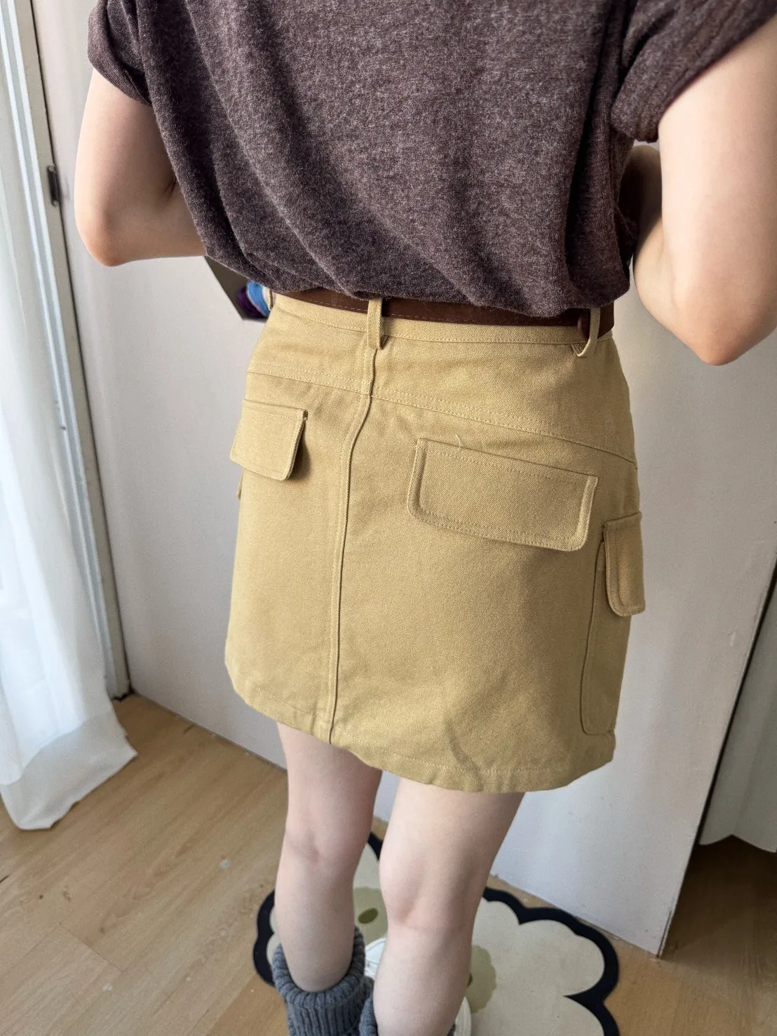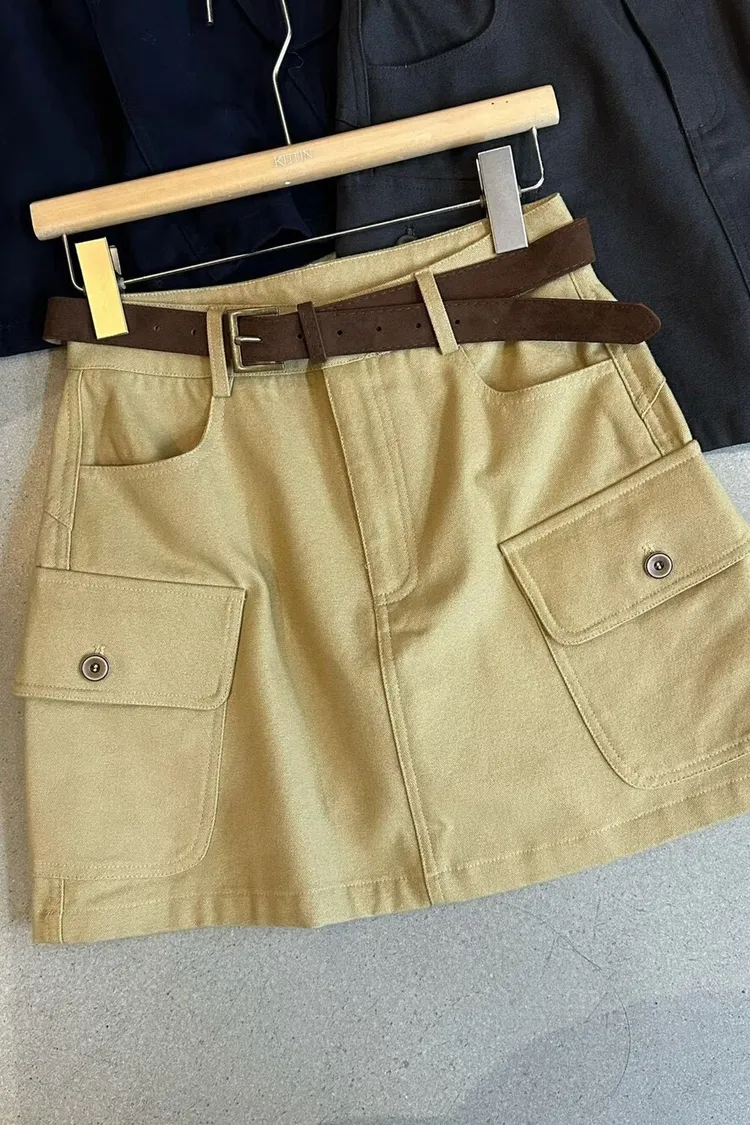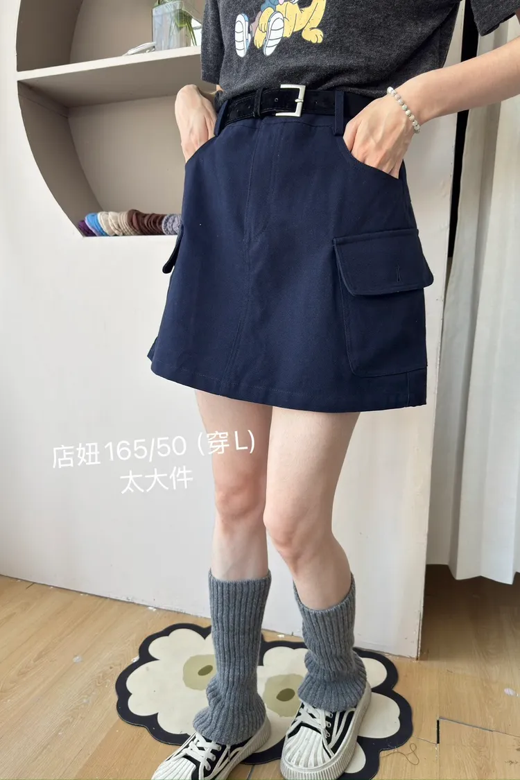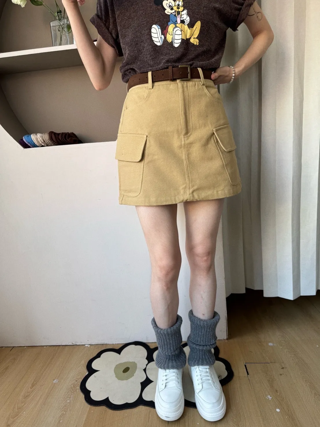 miu系工裝風磨毛高腰甜酷半身裙(配腰帶)