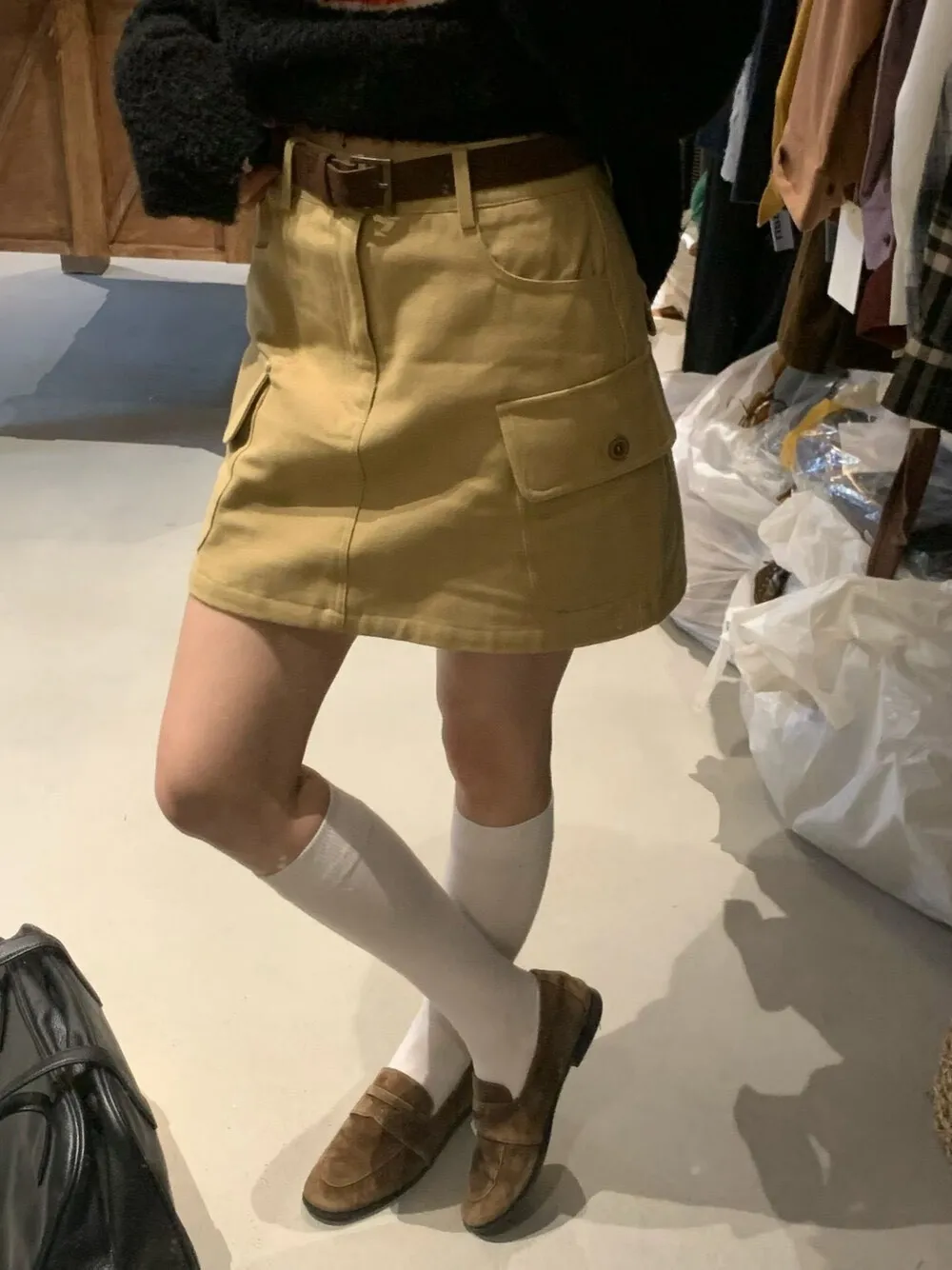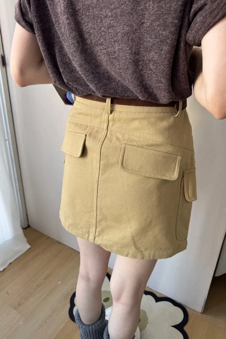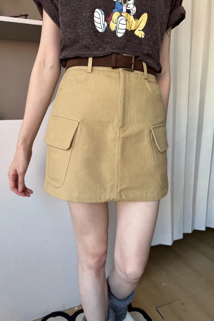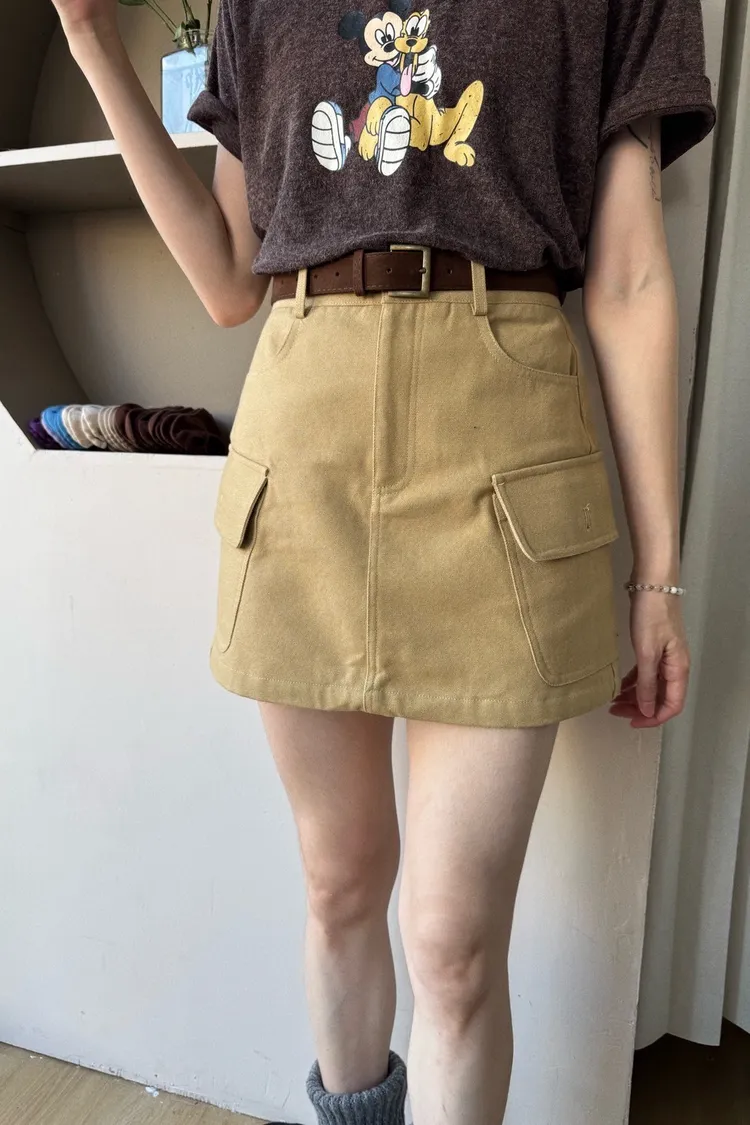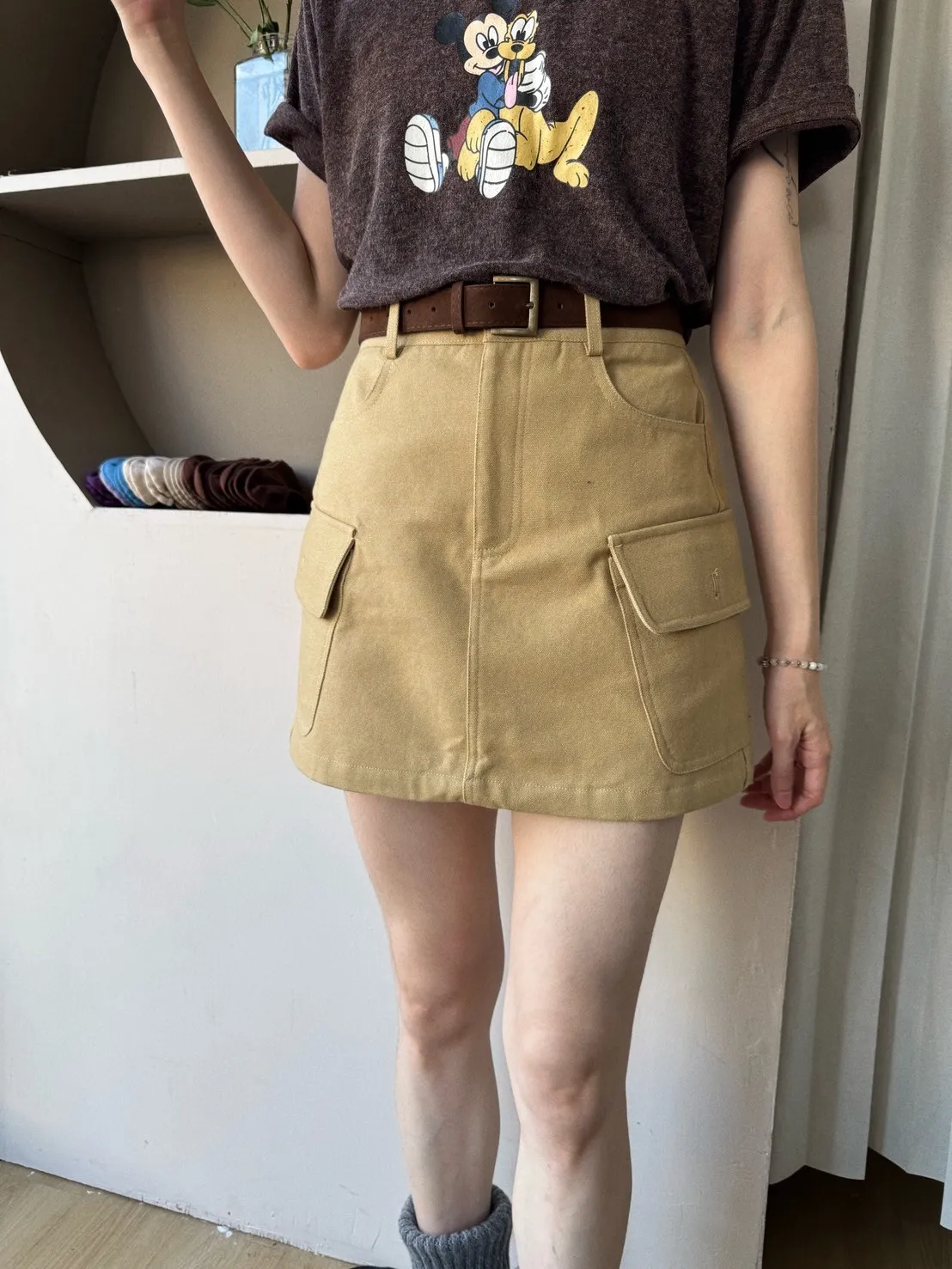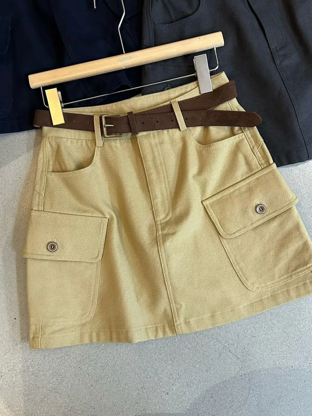 miu系工裝風磨毛高腰甜酷半身裙(配腰帶)