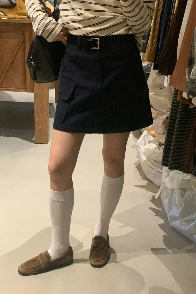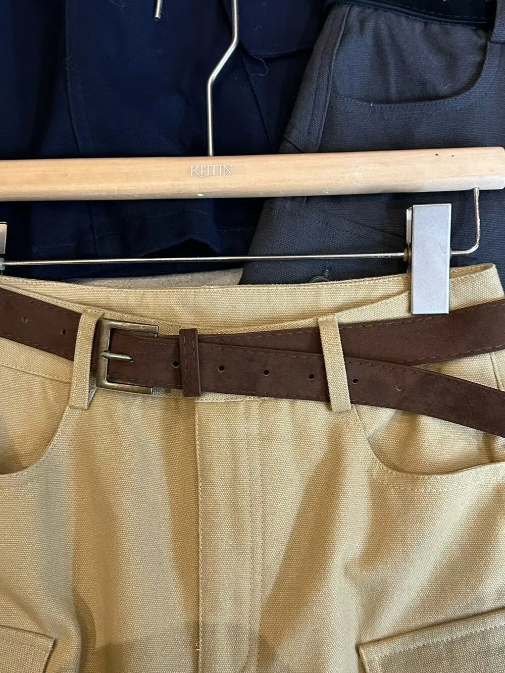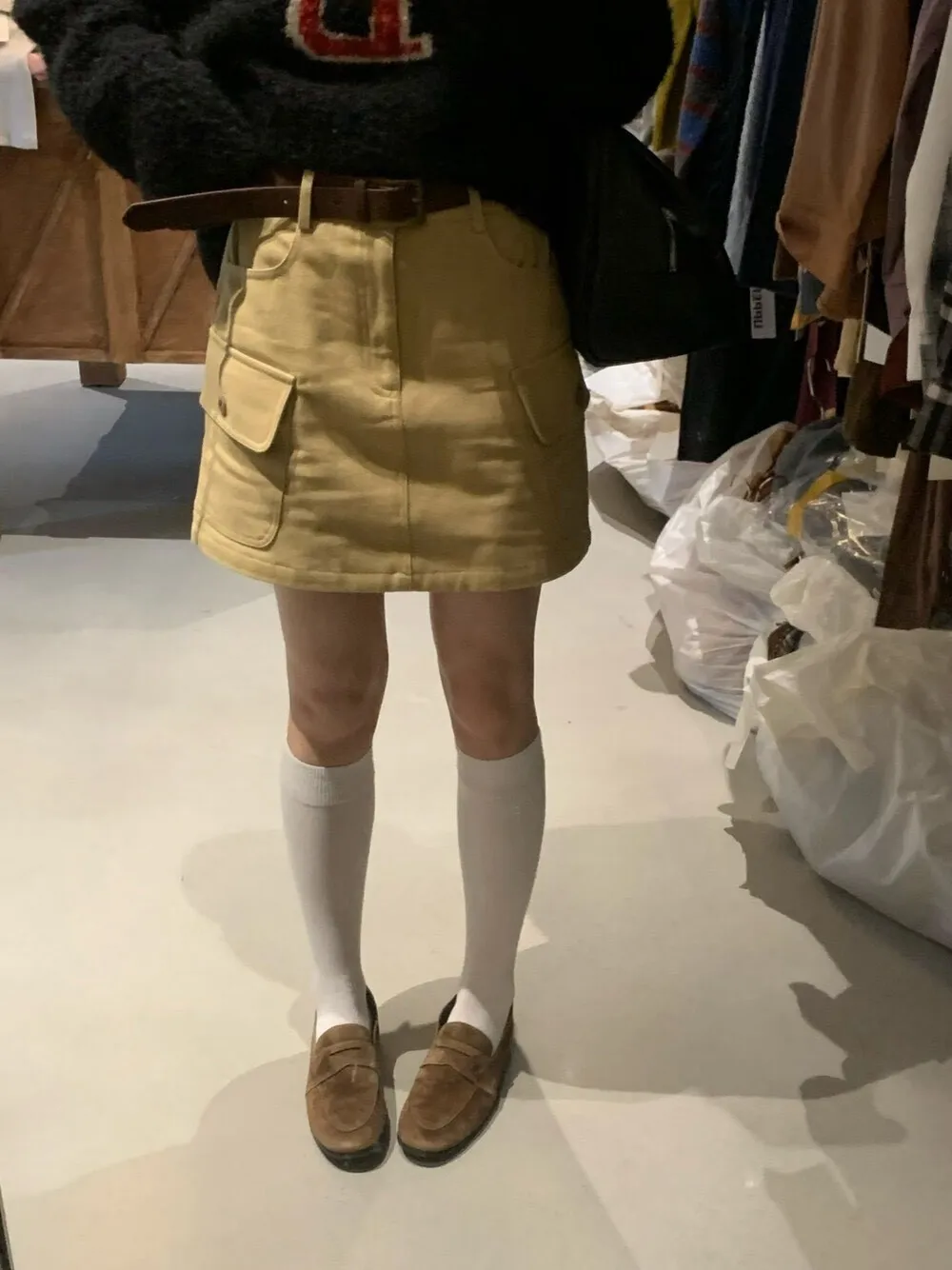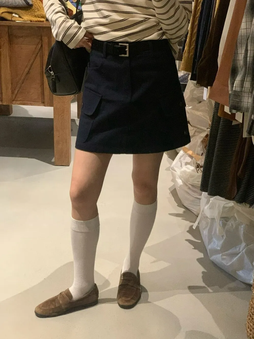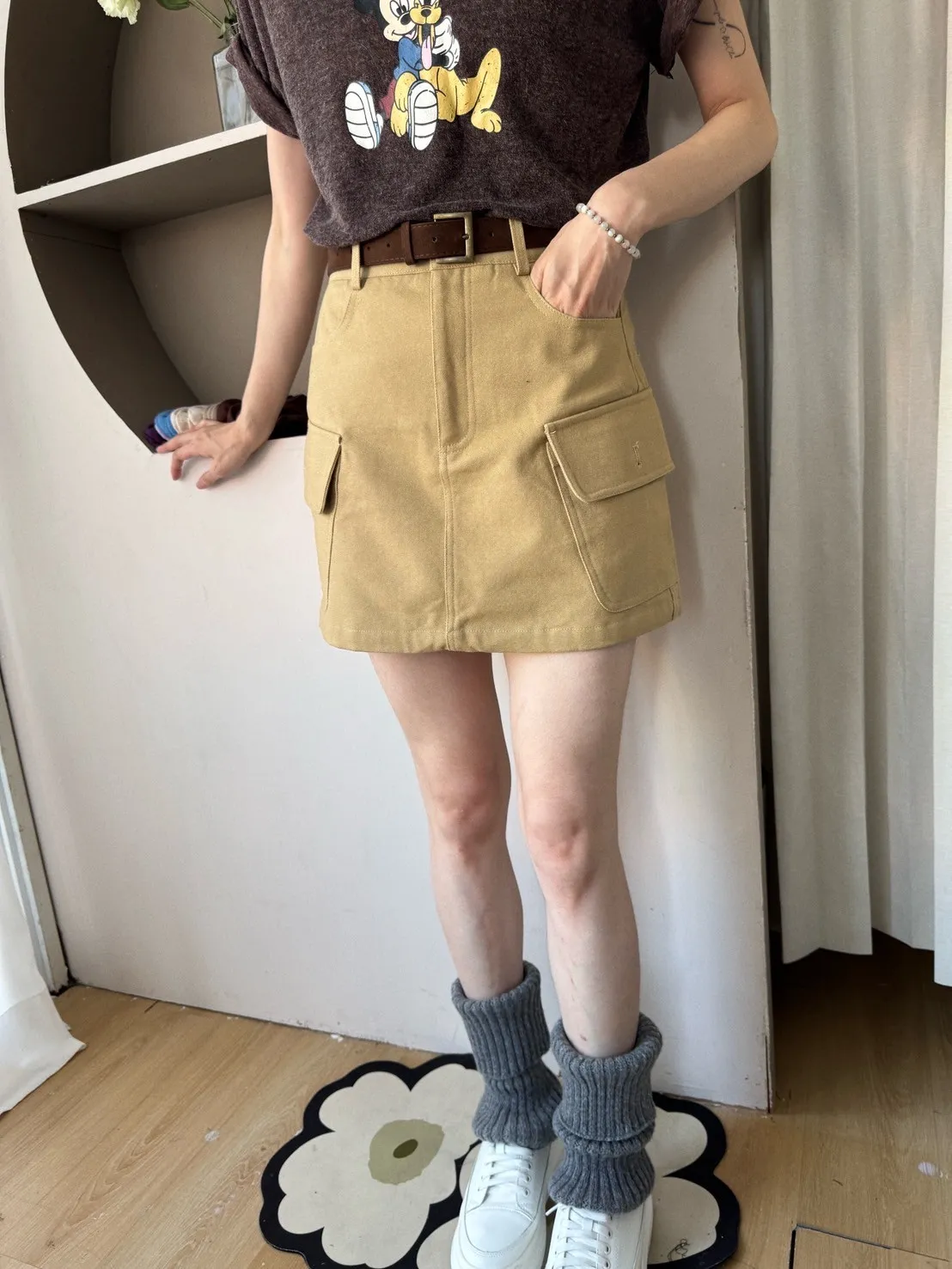 miu系工裝風磨毛高腰甜酷半身裙(配腰帶)