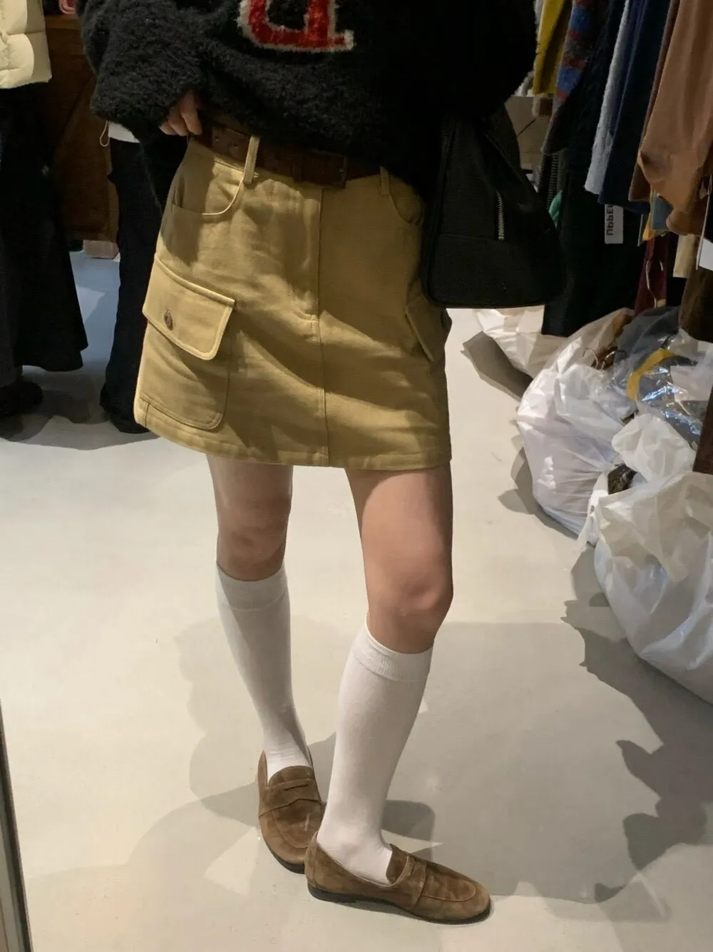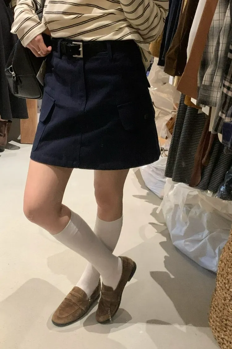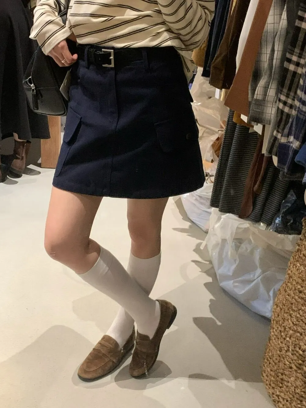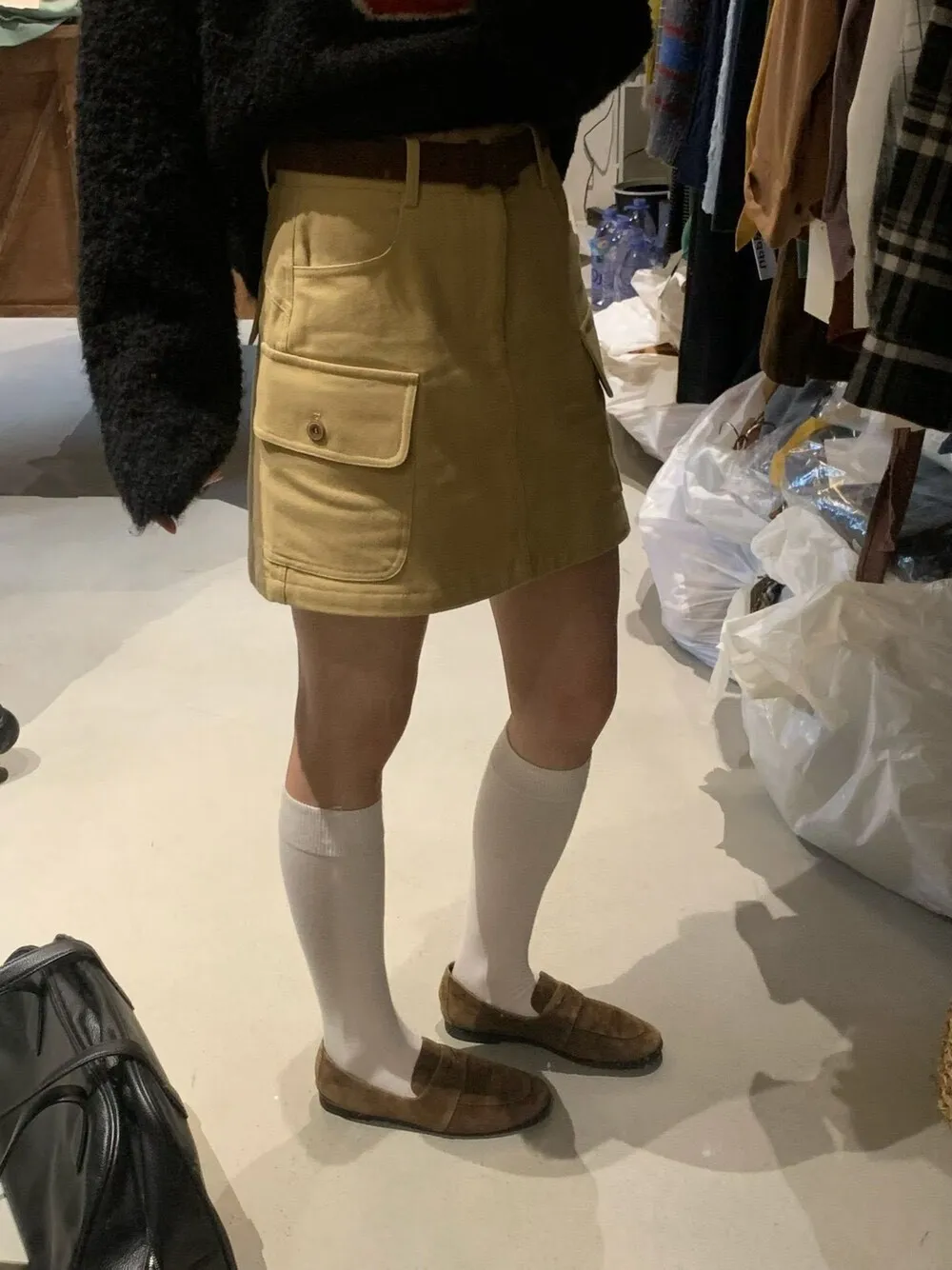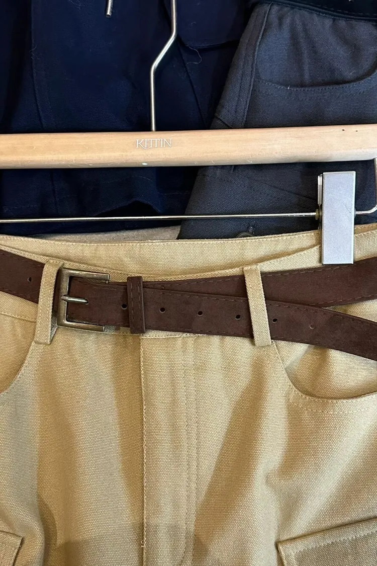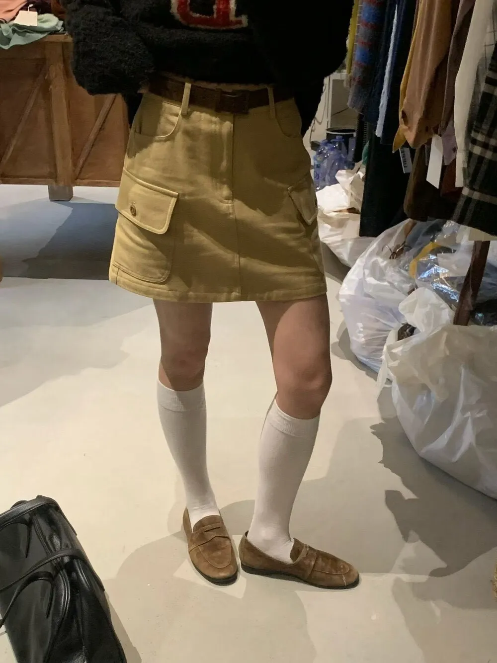 miu系工裝風磨毛高腰甜酷半身裙(配腰帶)