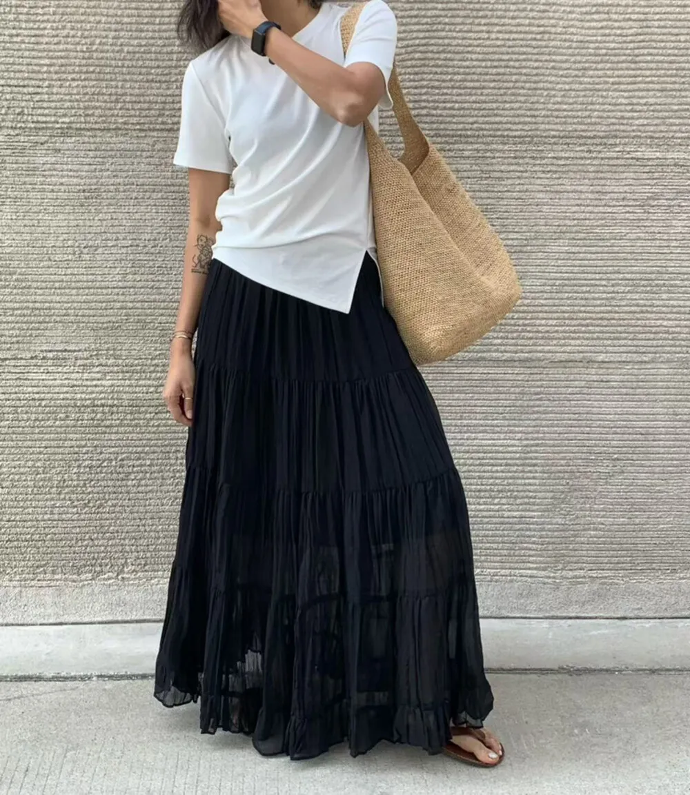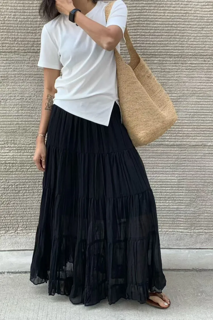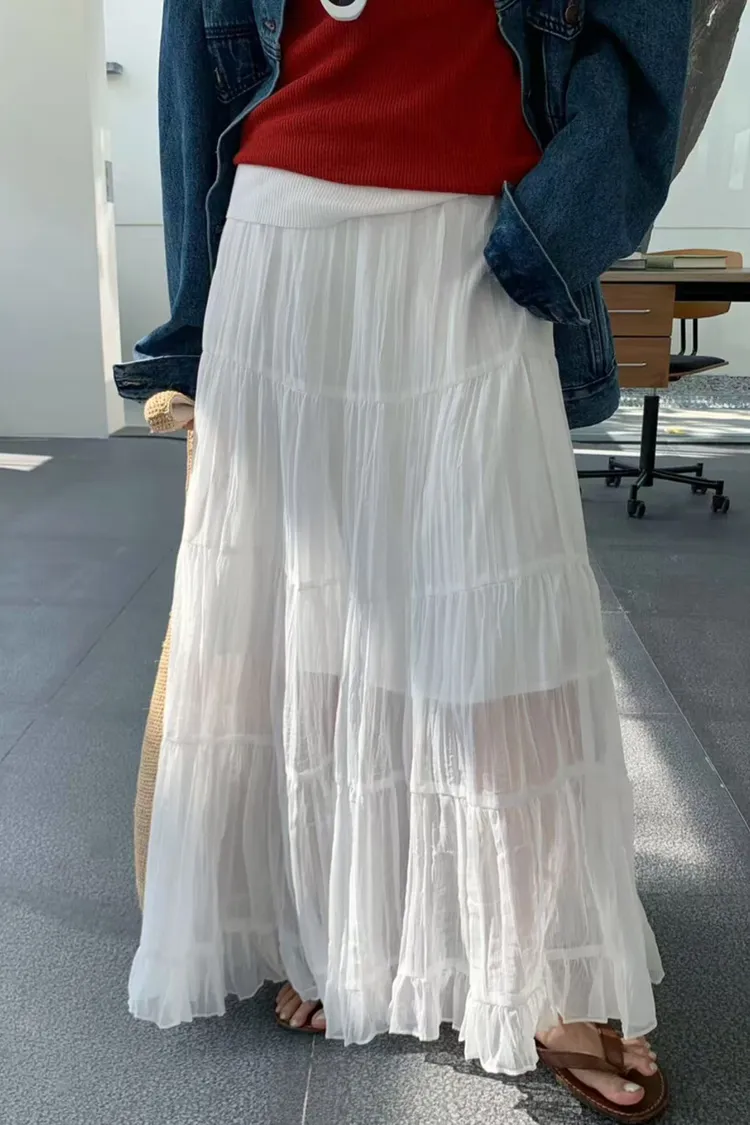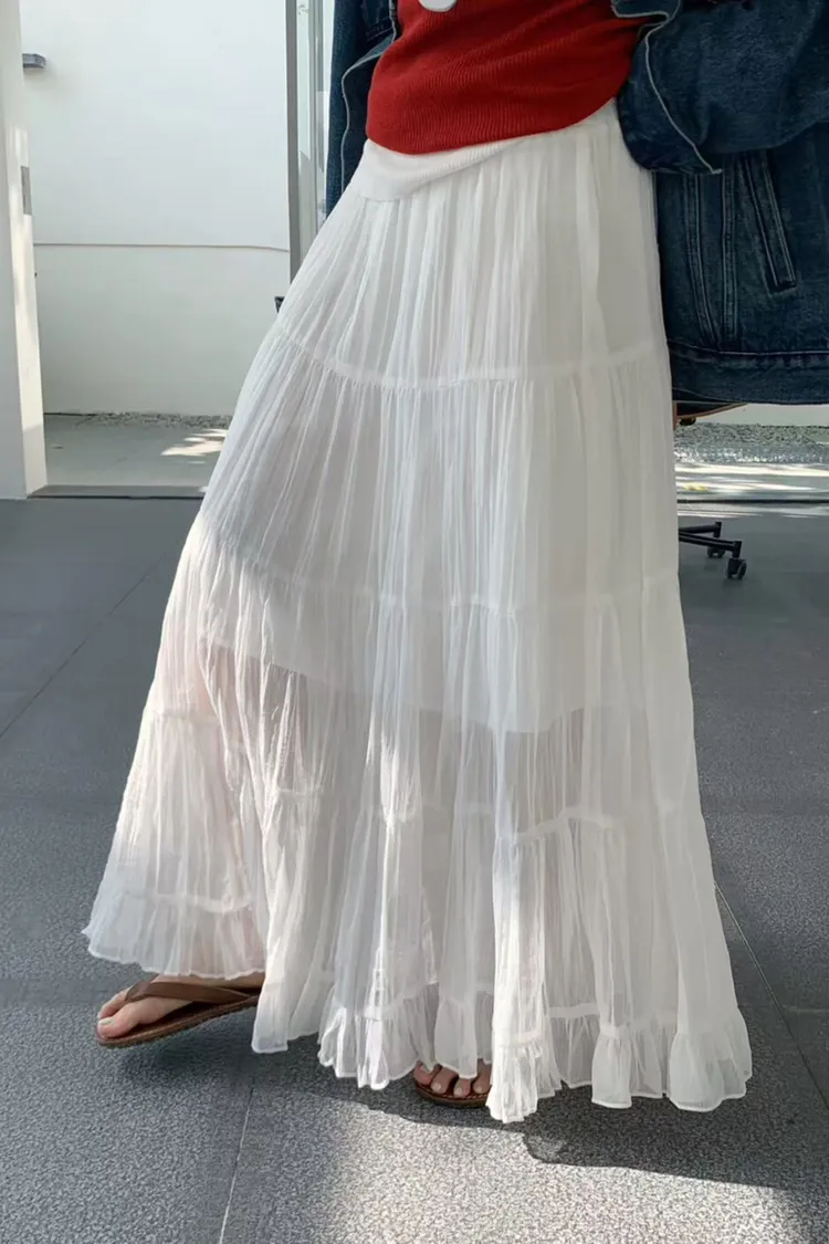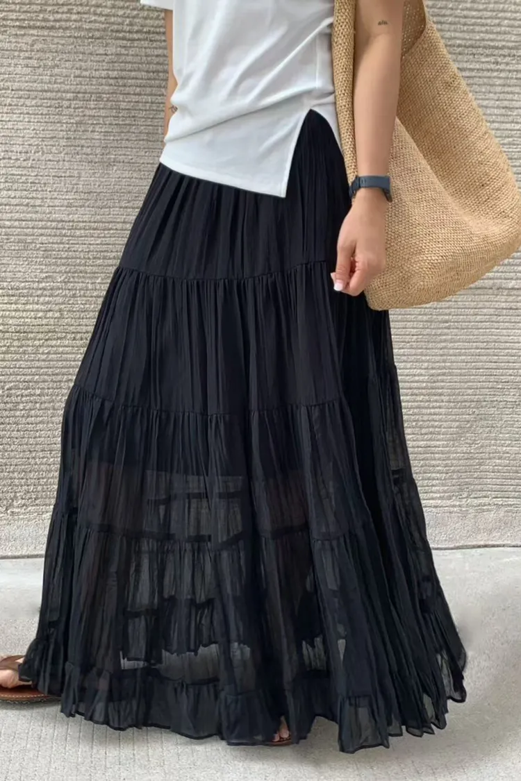 26年春款!輕盈飄逸淨色半身裙