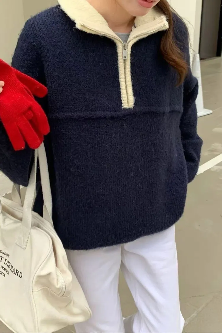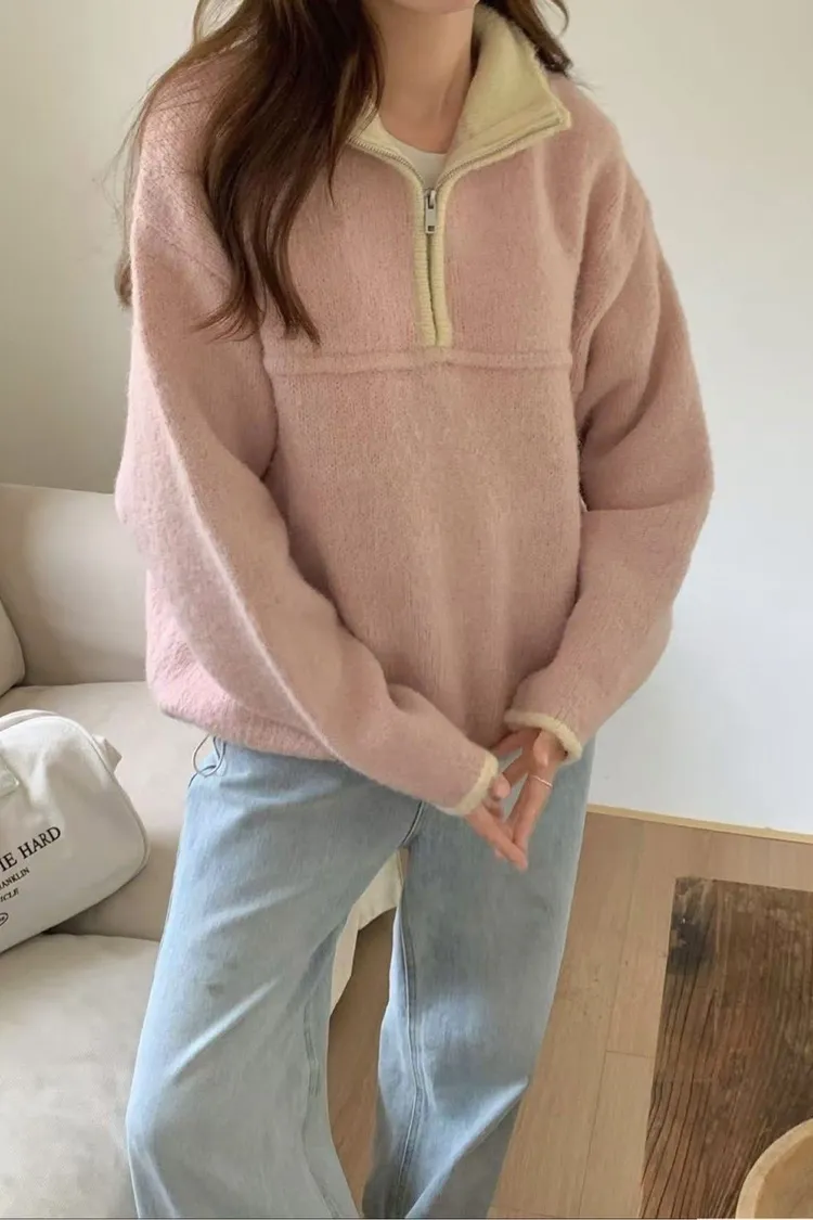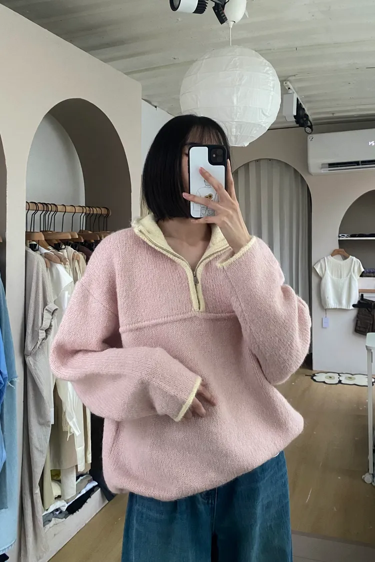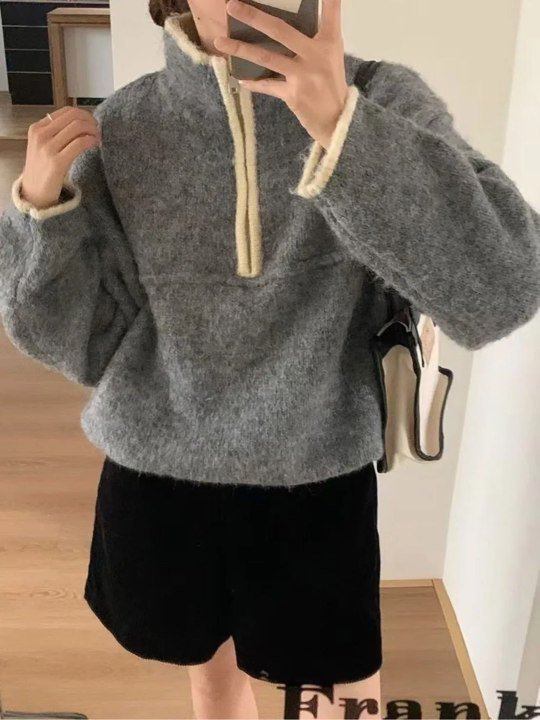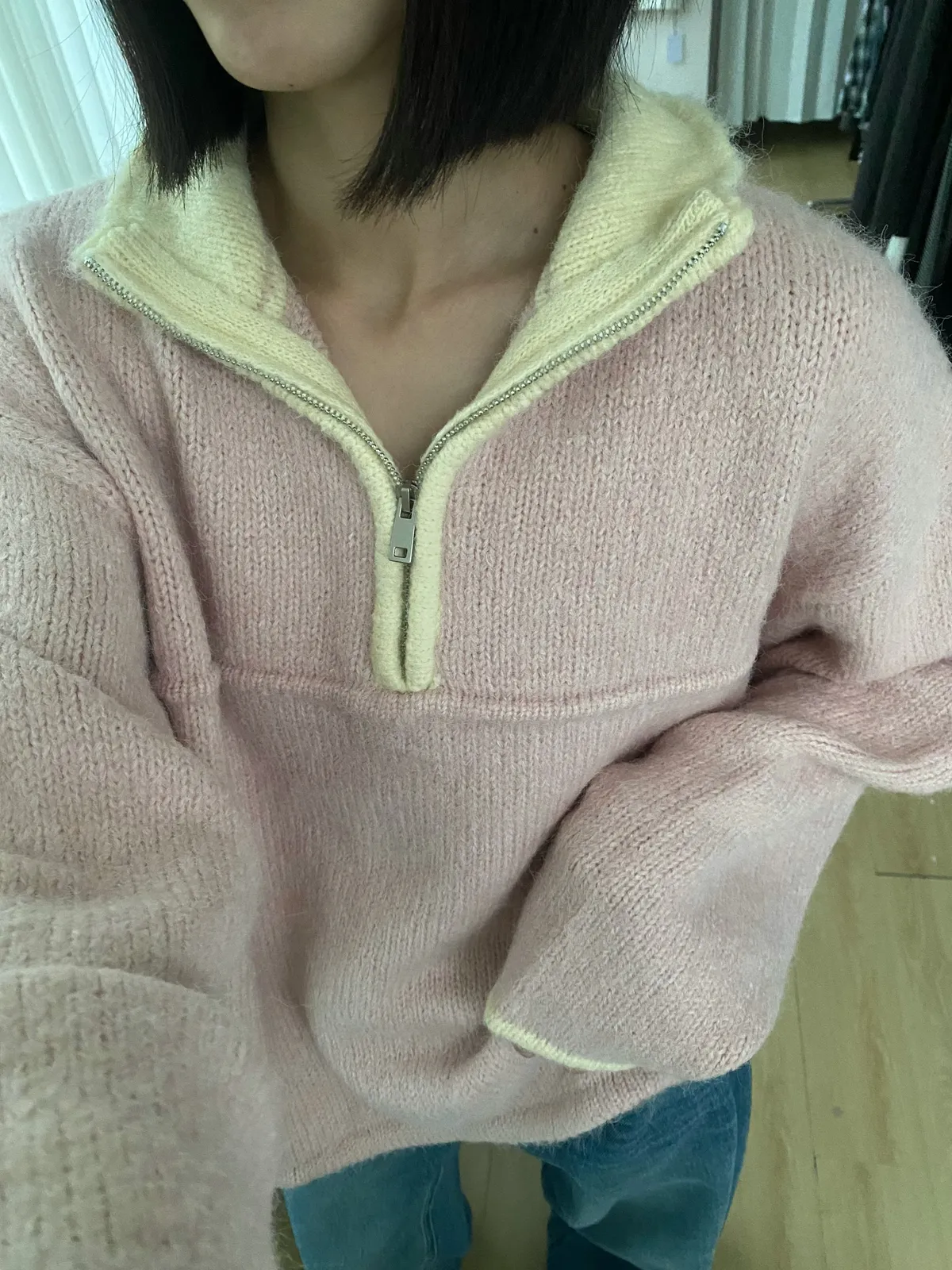 柔軟毛呢觸感搭配半開拉鍊設計💗