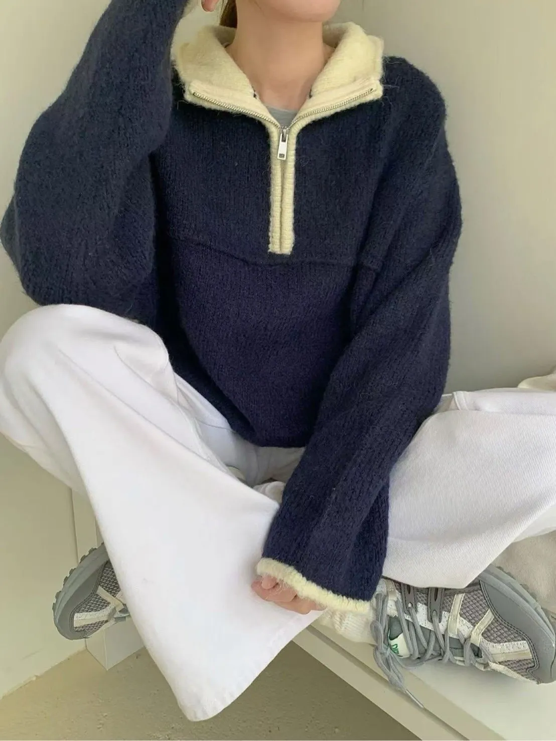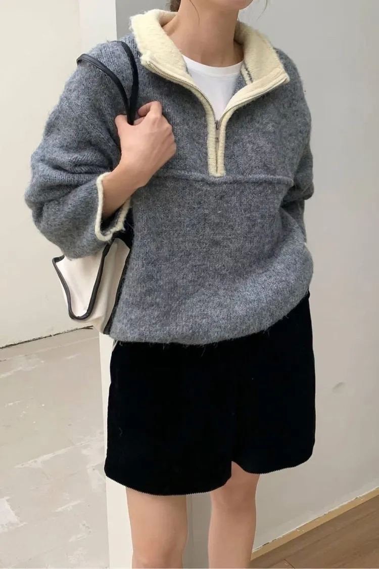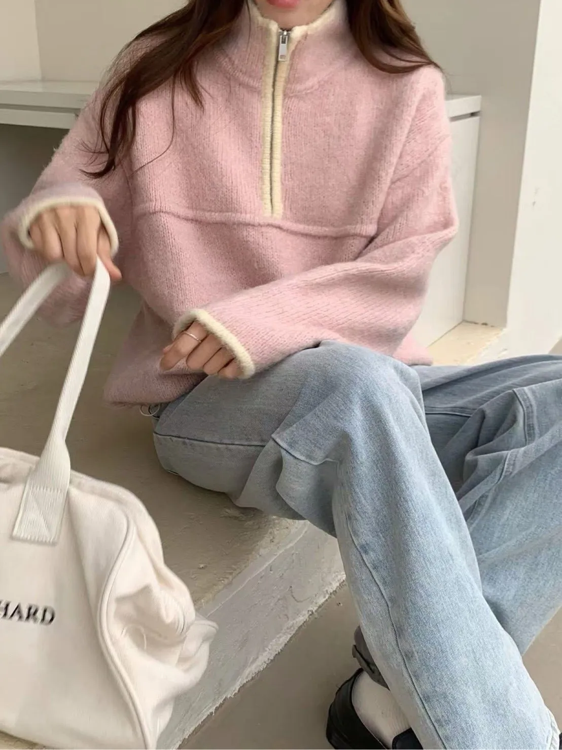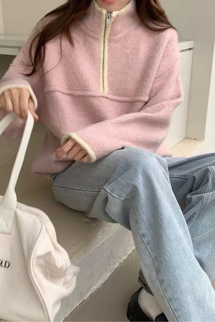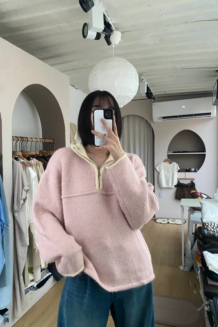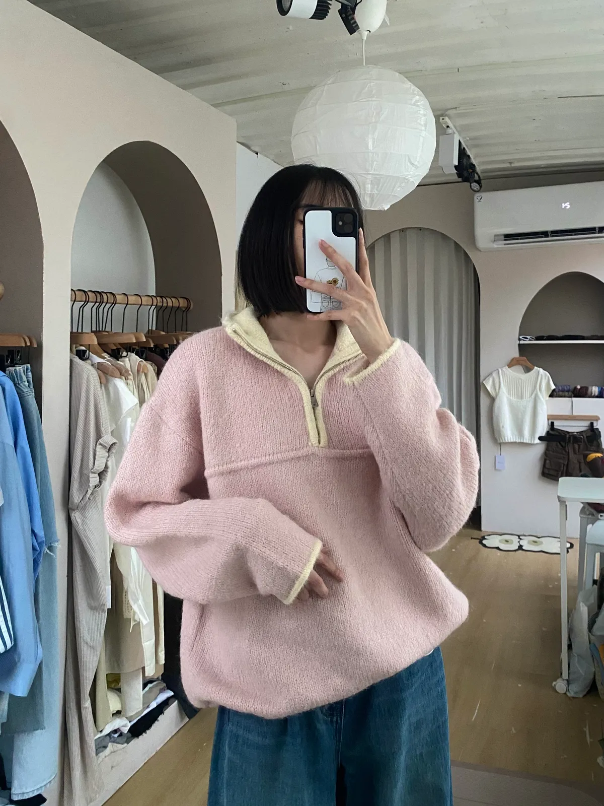 柔軟毛呢觸感搭配半開拉鍊設計💗