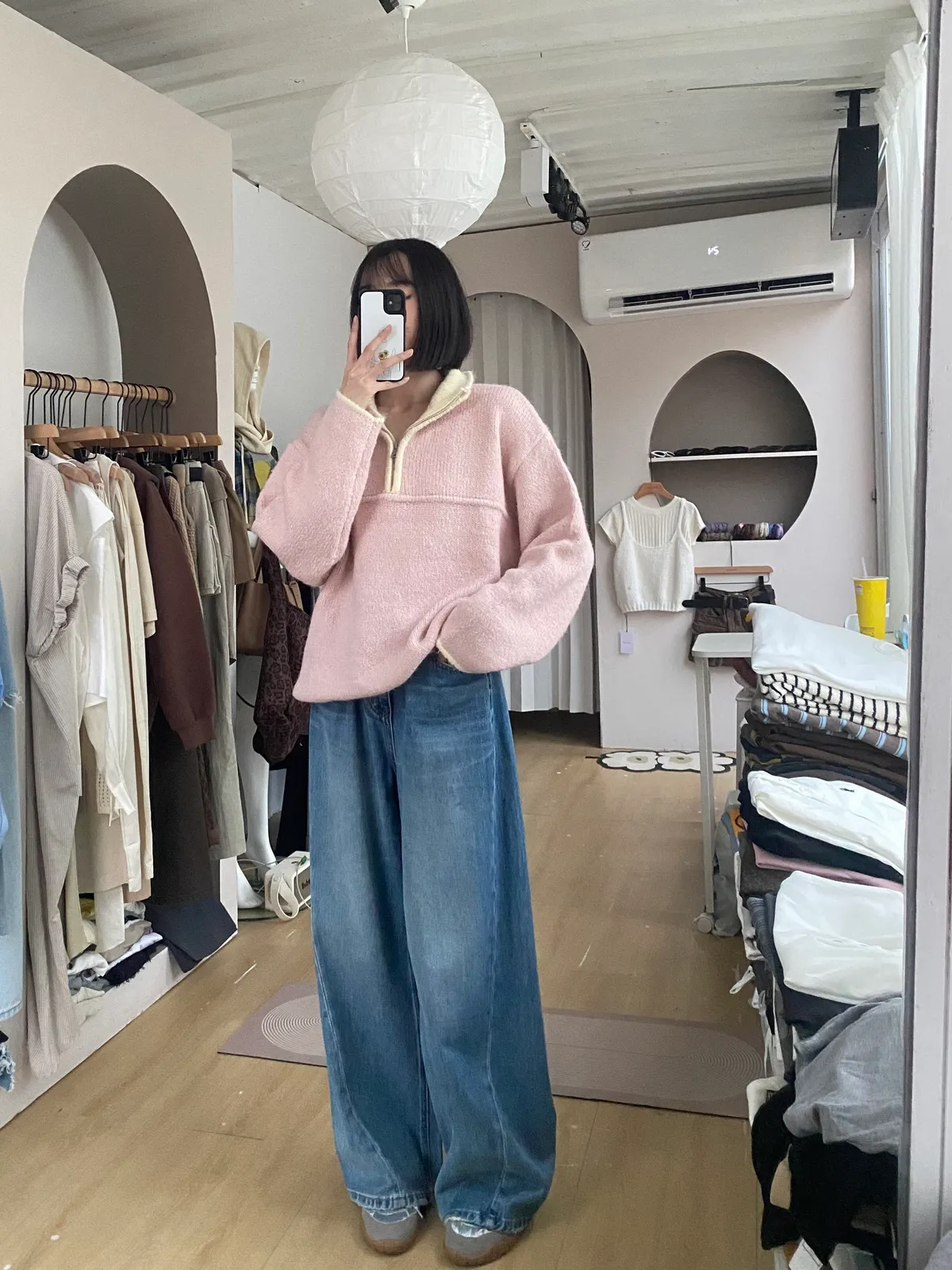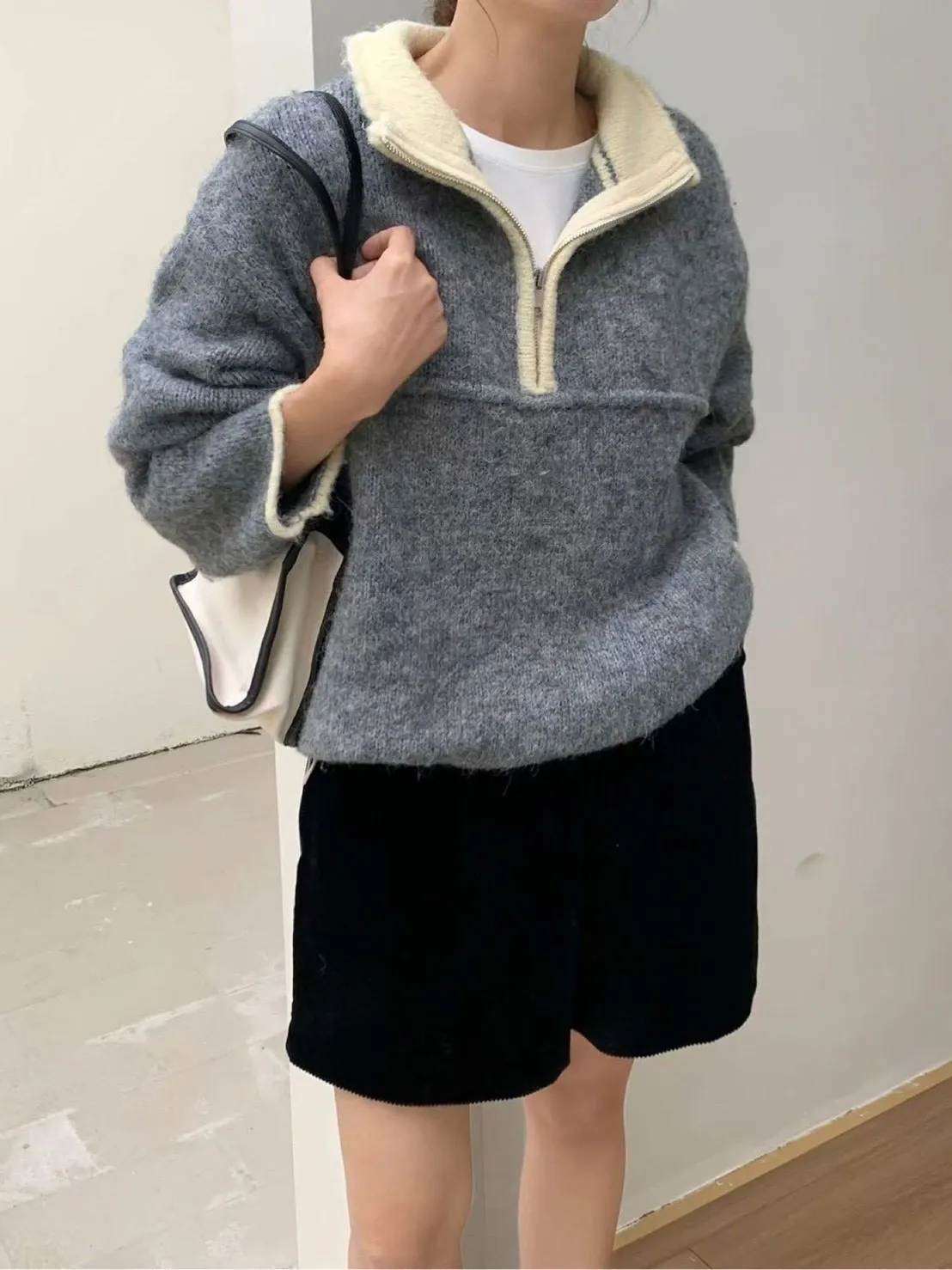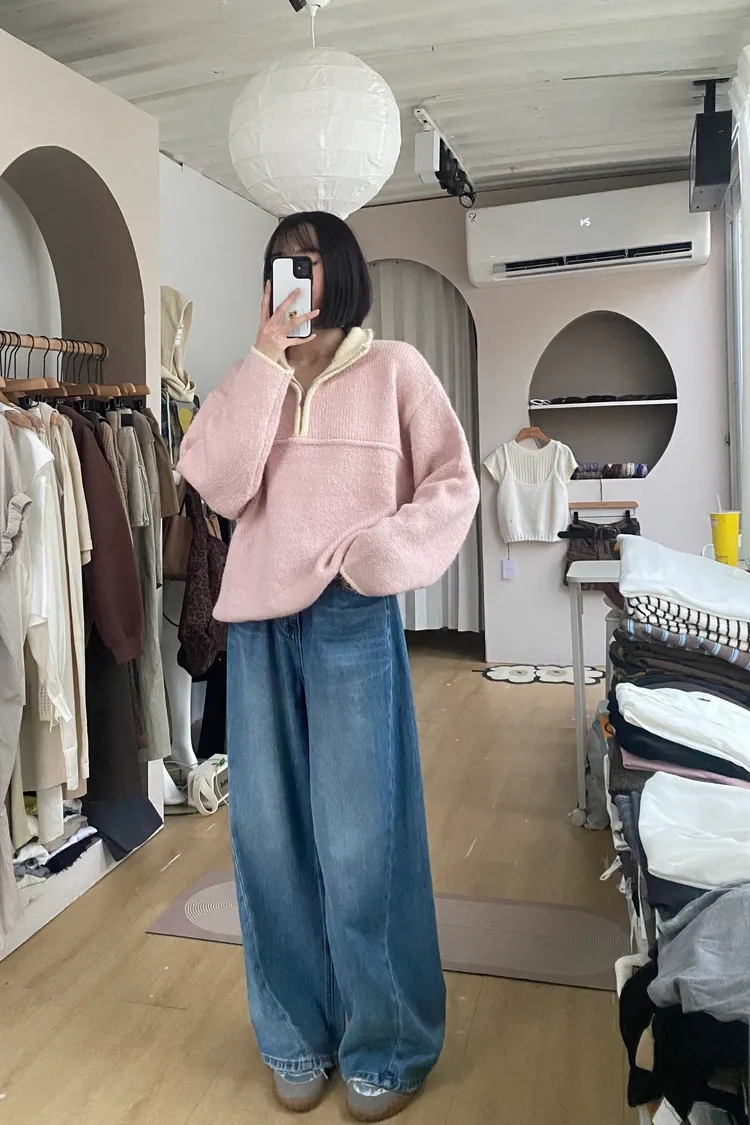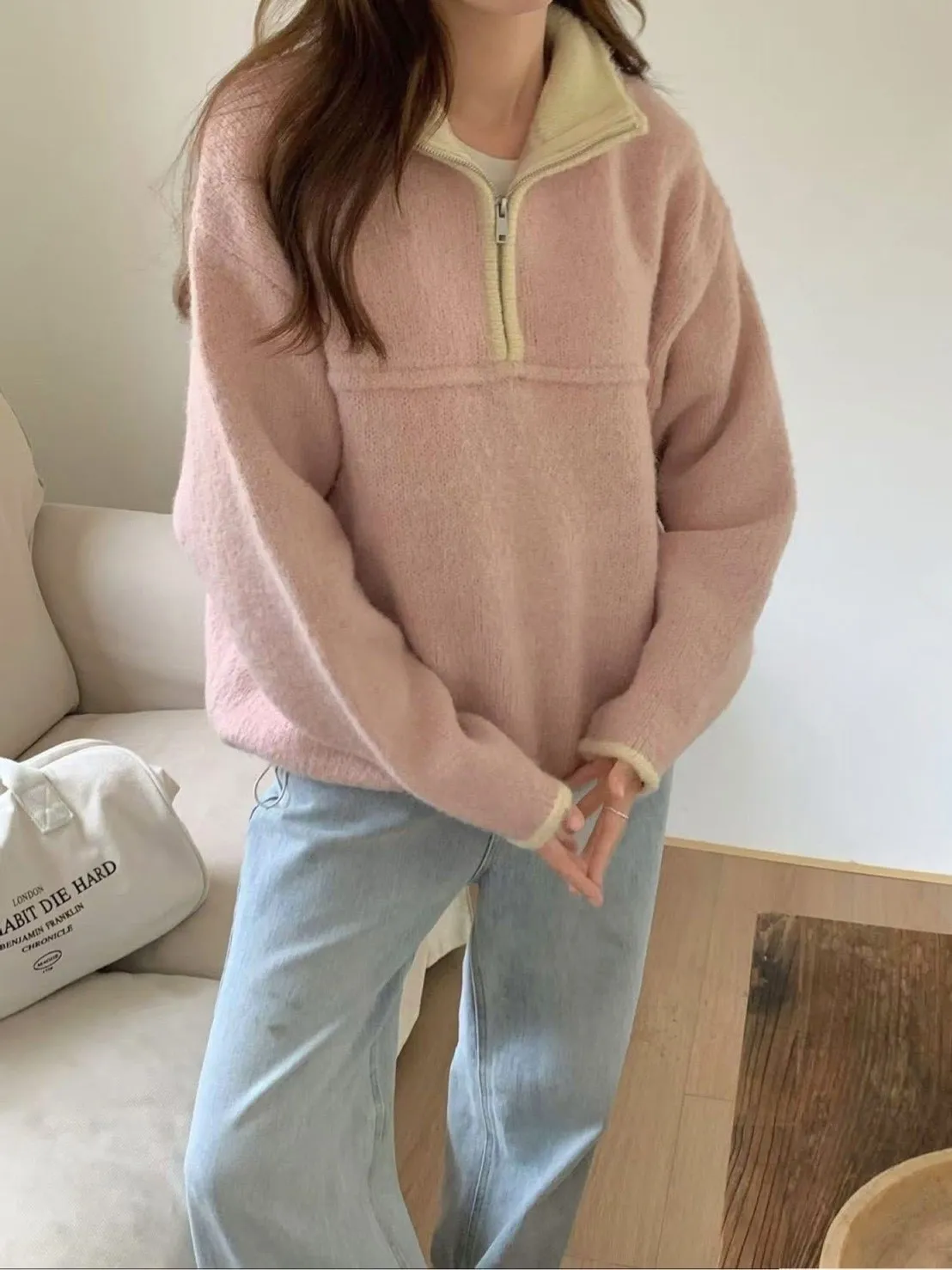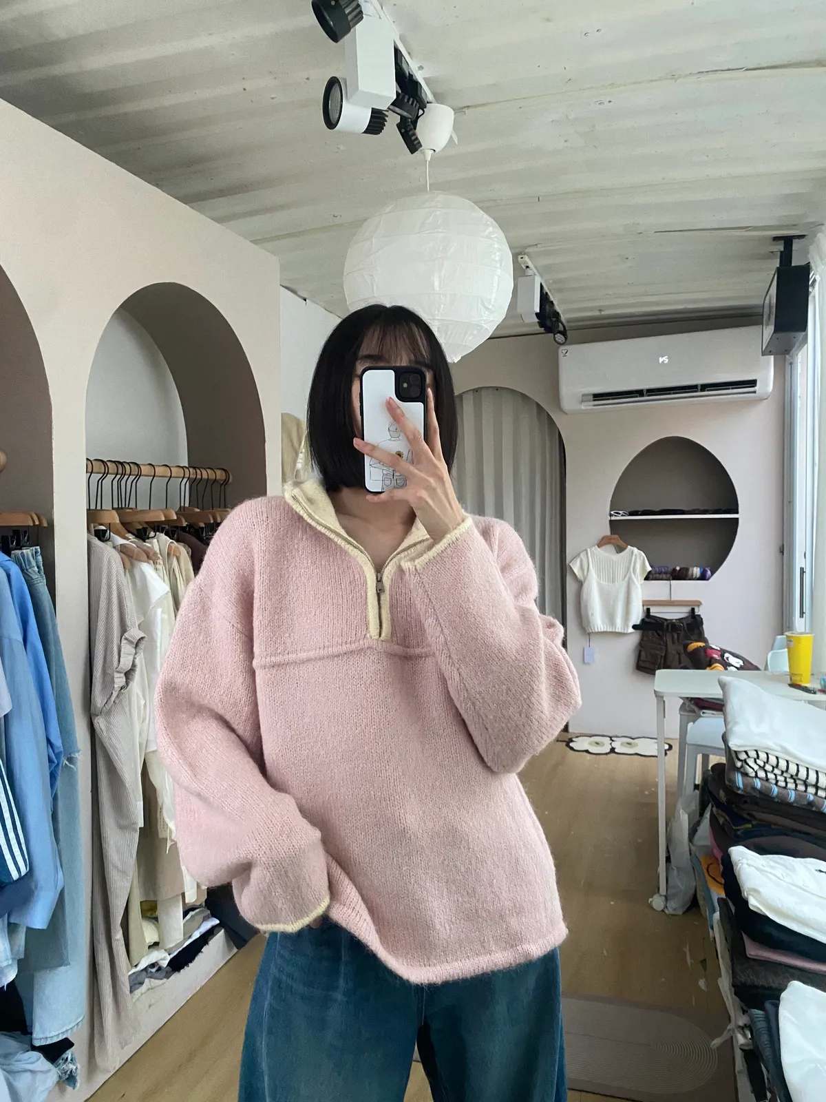 柔軟毛呢觸感搭配半開拉鍊設計💗