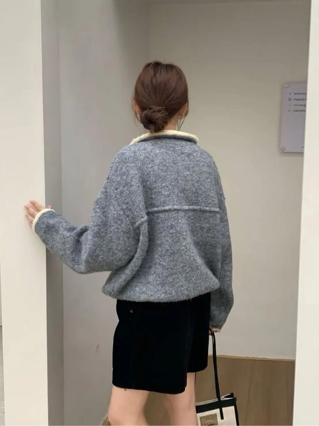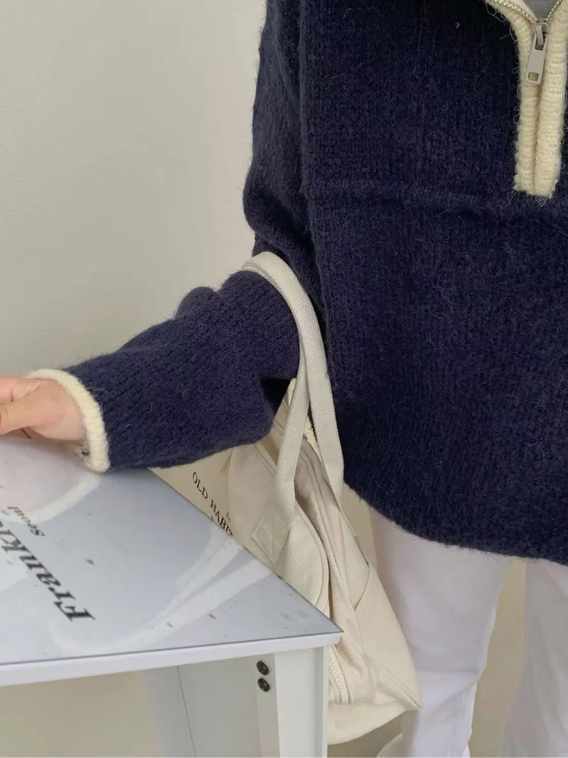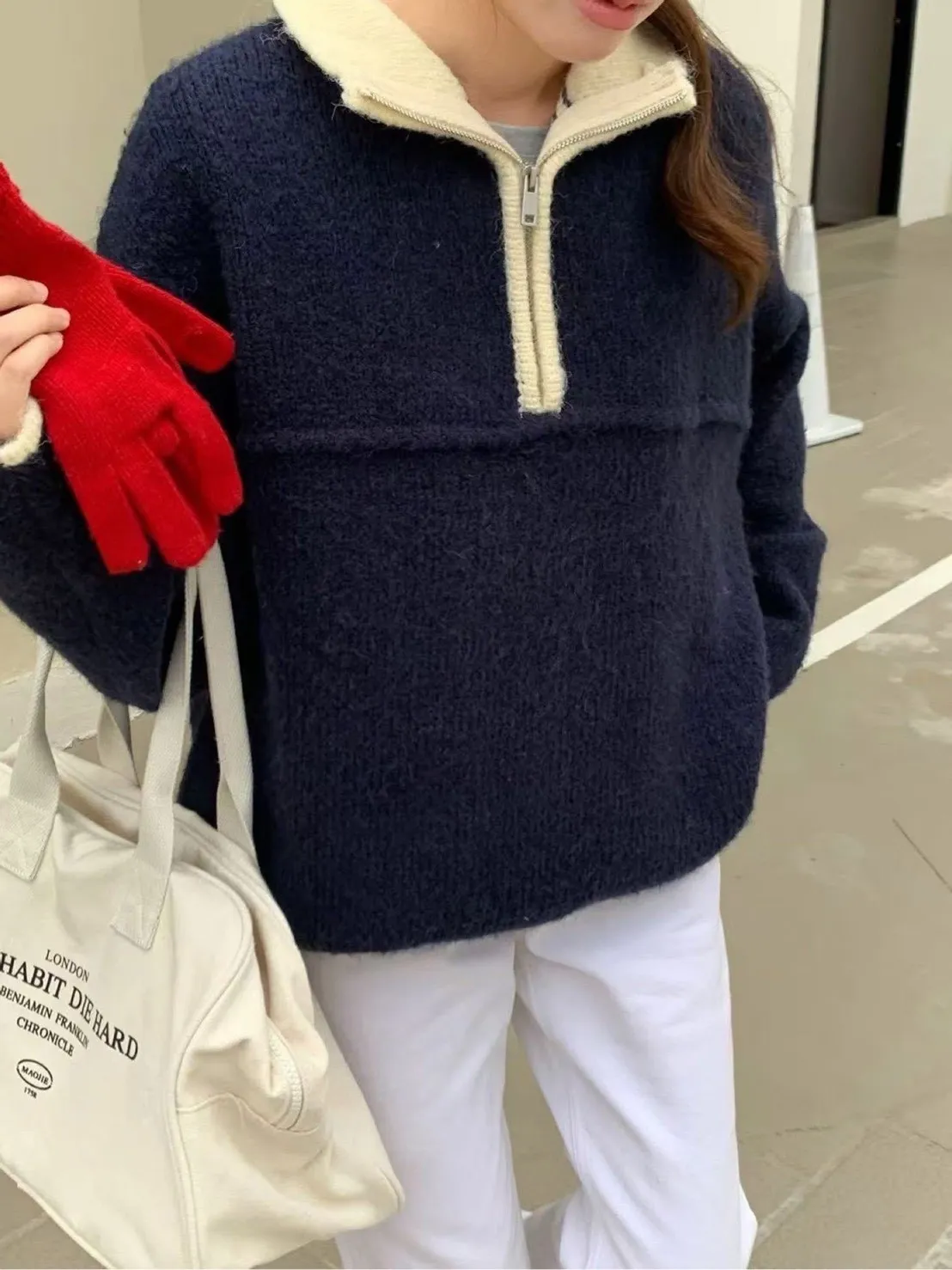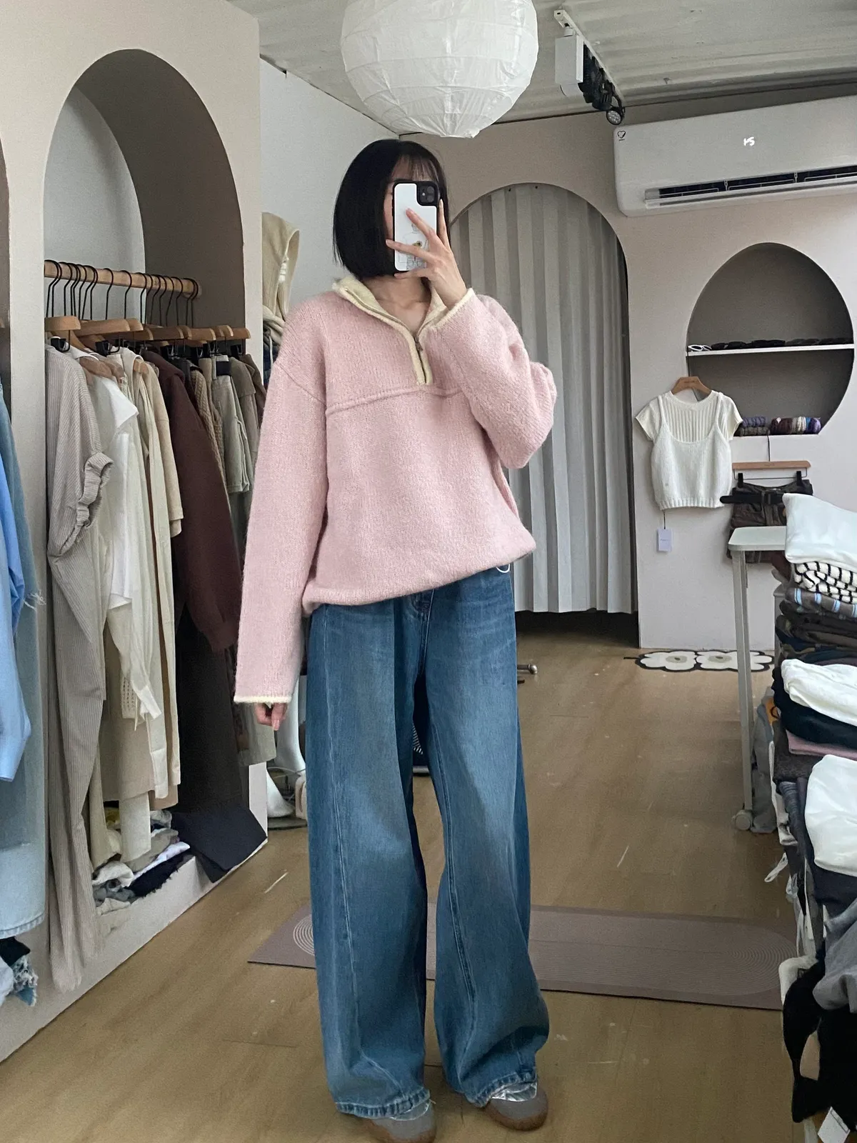 柔軟毛呢觸感搭配半開拉鍊設計💗