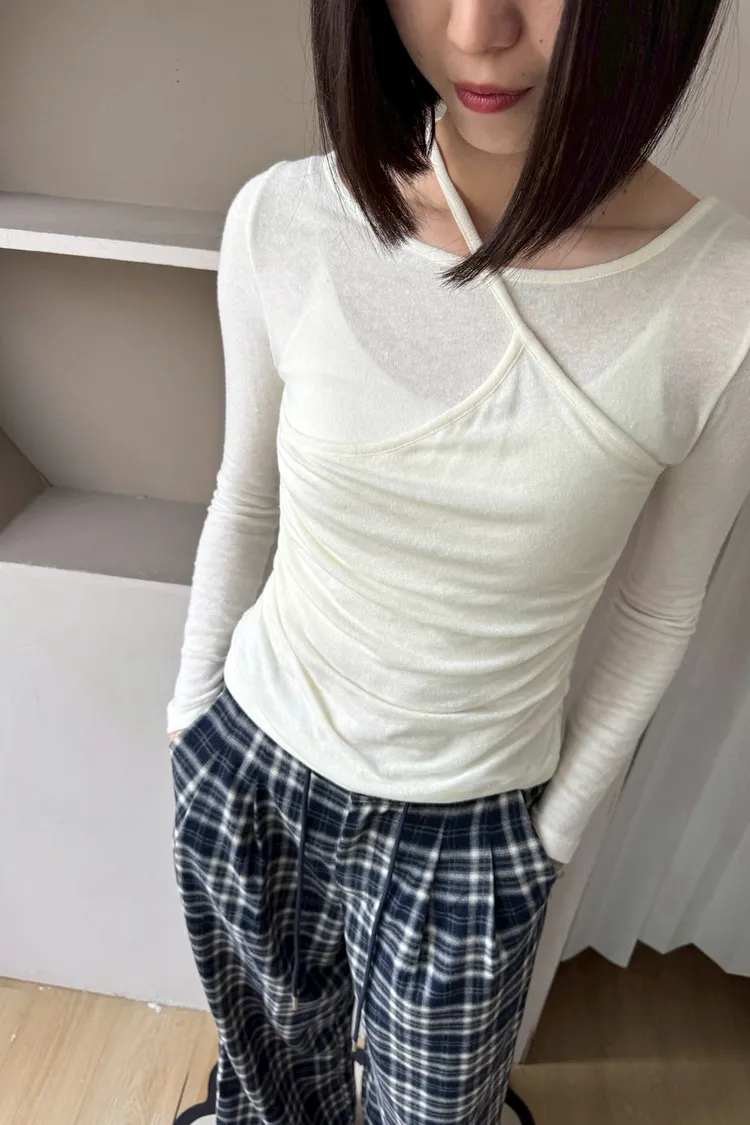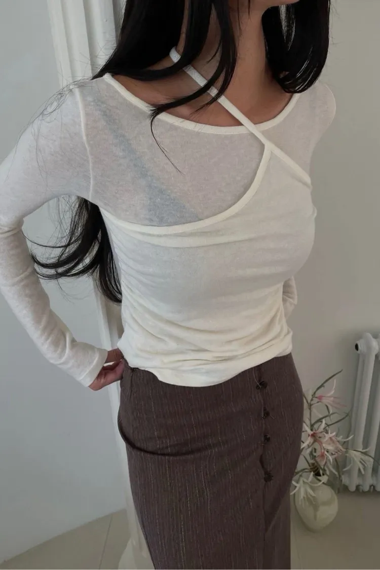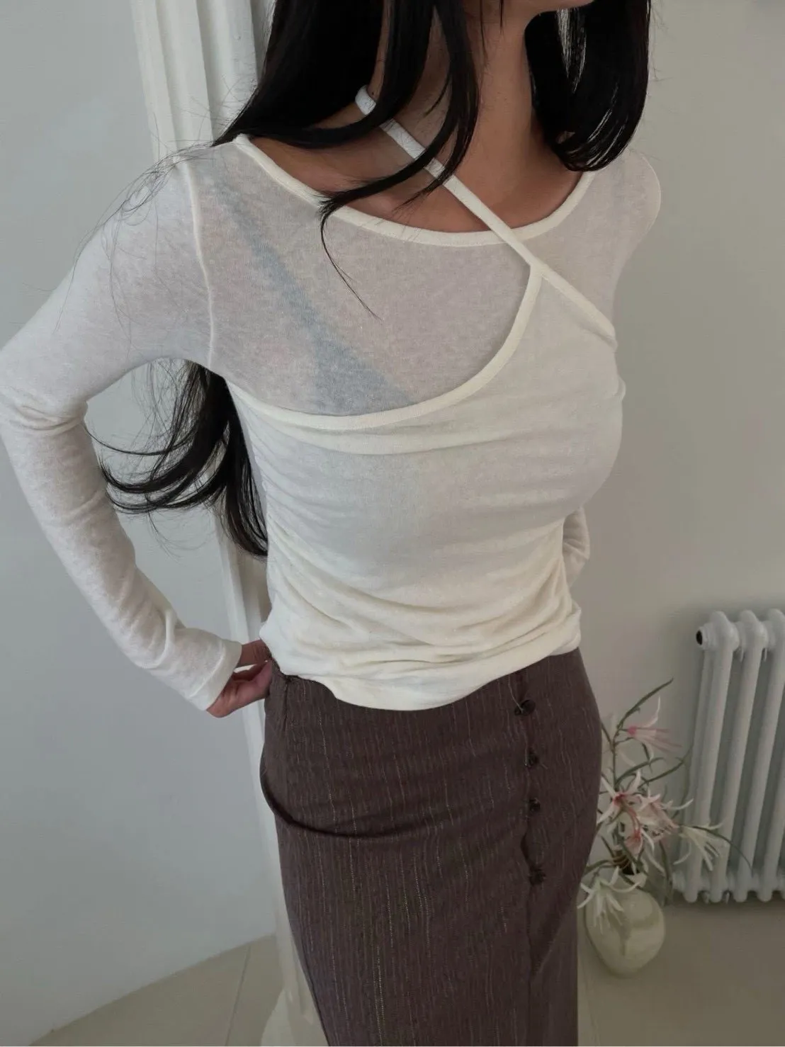 交叉肩帶設計展現細緻鎖骨線條❗️