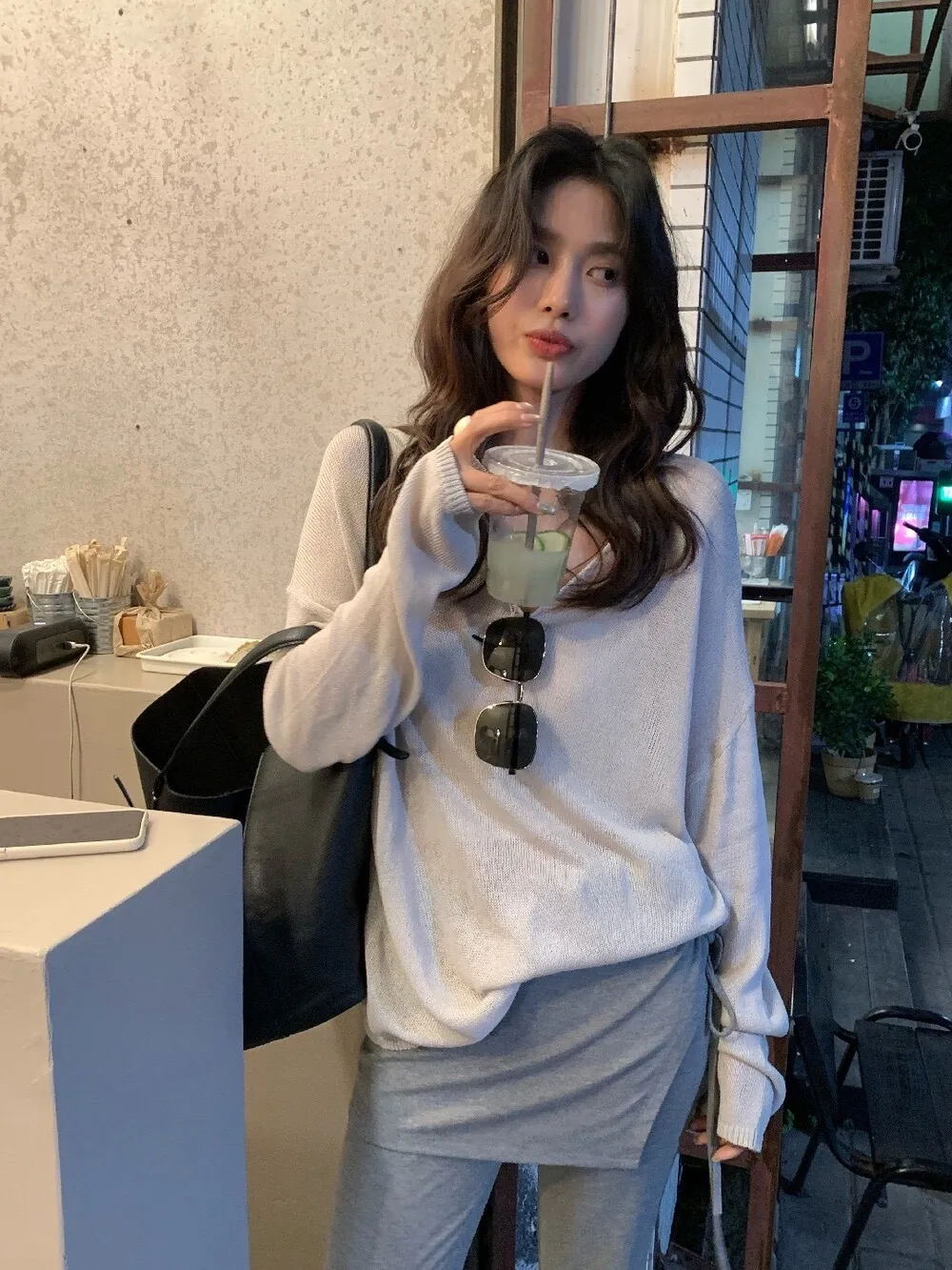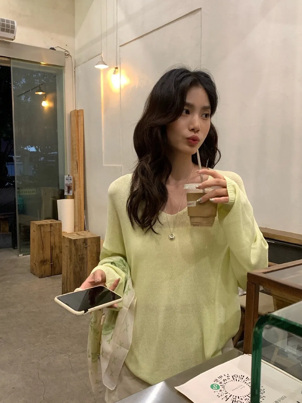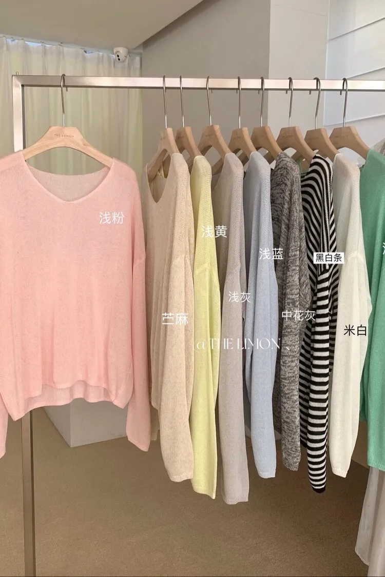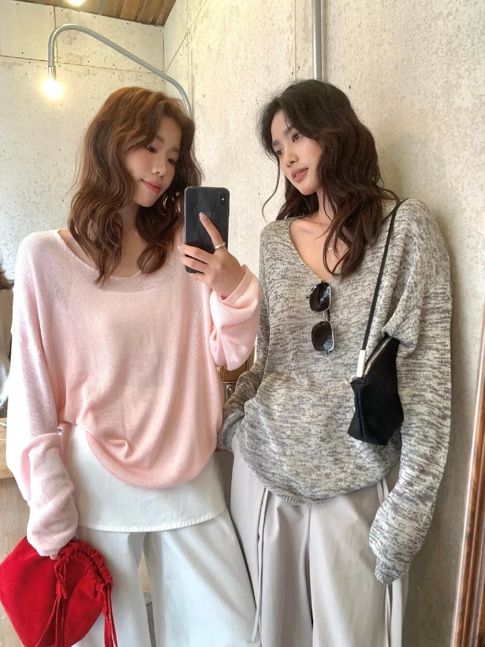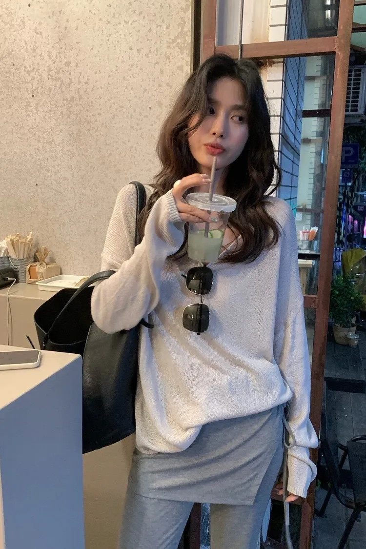 版型Ju顯瘦~溫柔慵懶V領寬松套頭針織衫