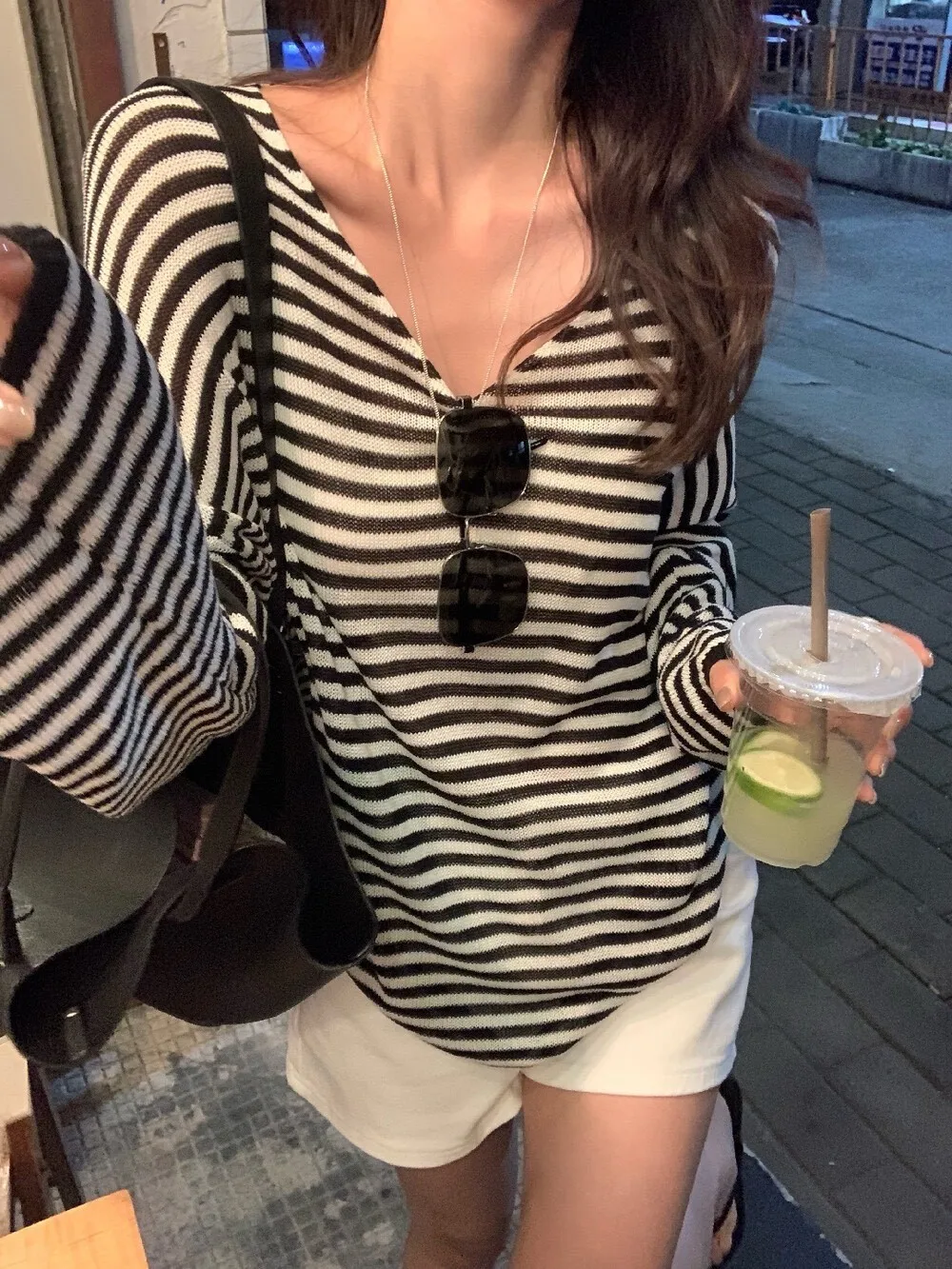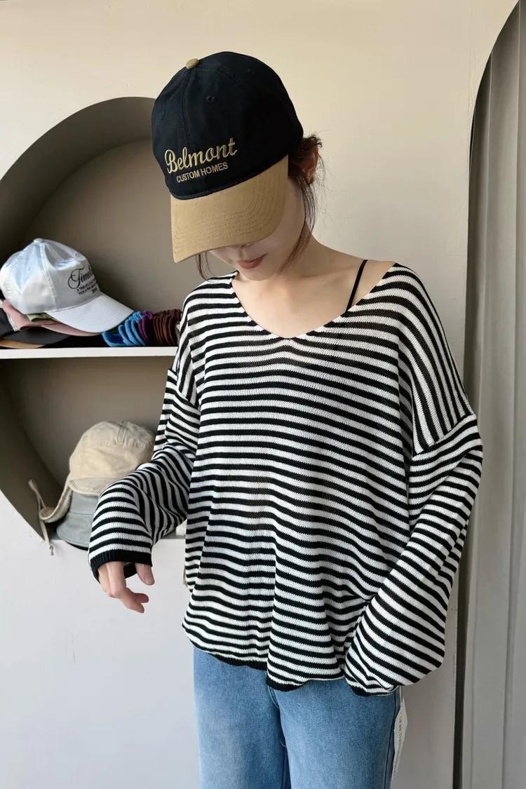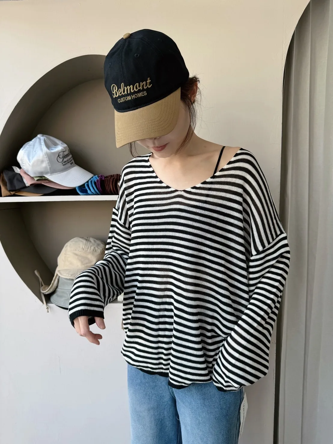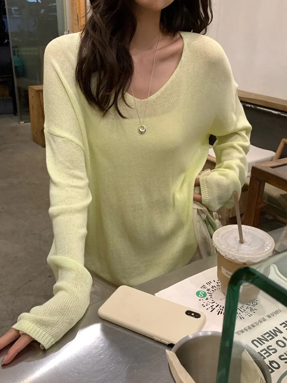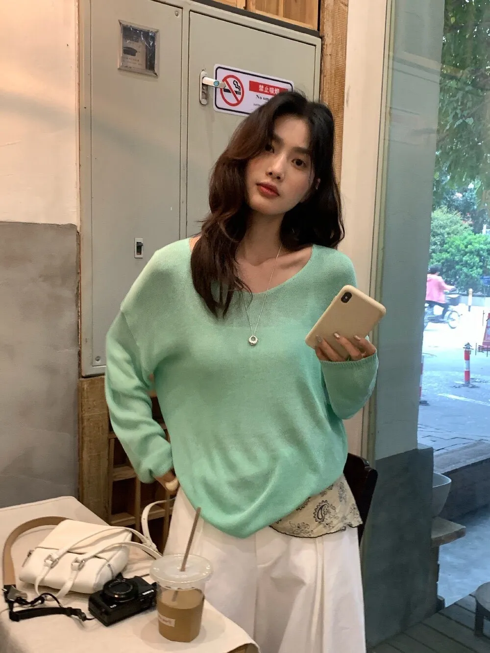 版型Ju顯瘦~溫柔慵懶V領寬松套頭針織衫