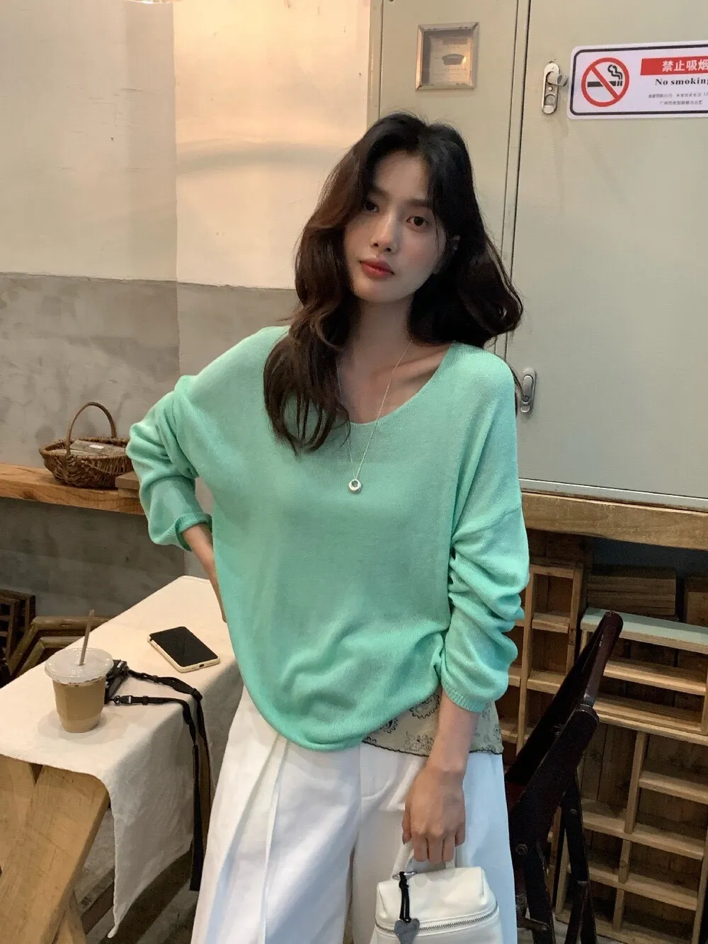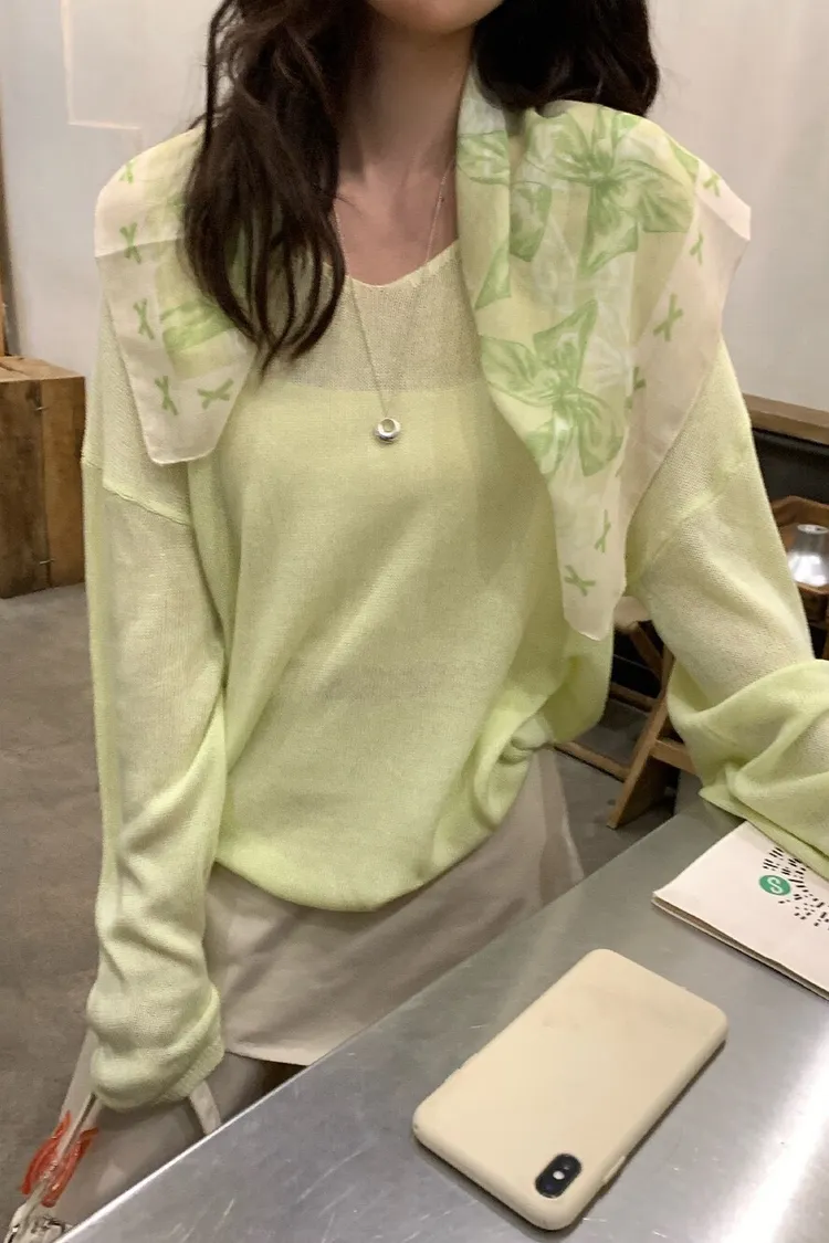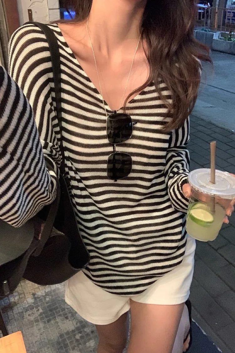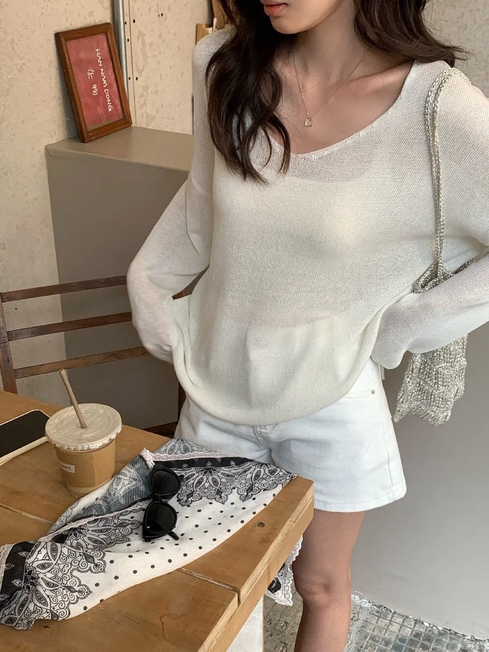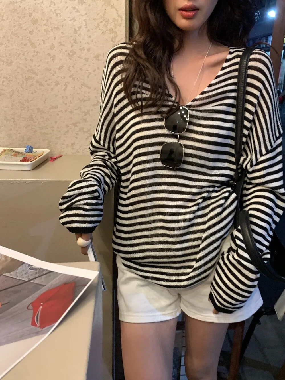 版型Ju顯瘦~溫柔慵懶V領寬松套頭針織衫
