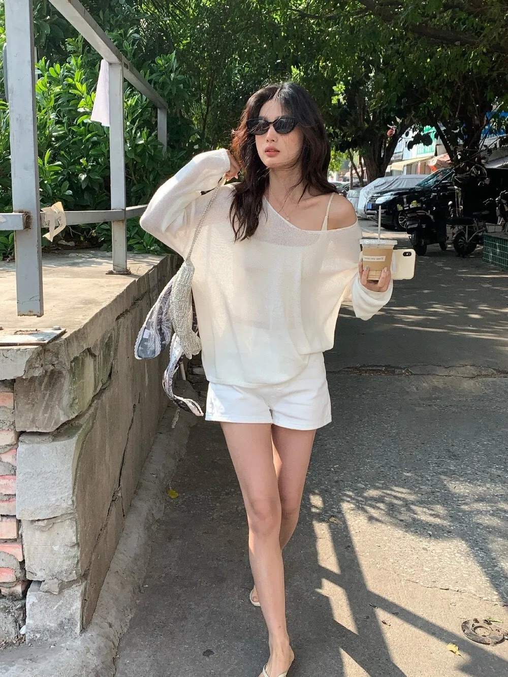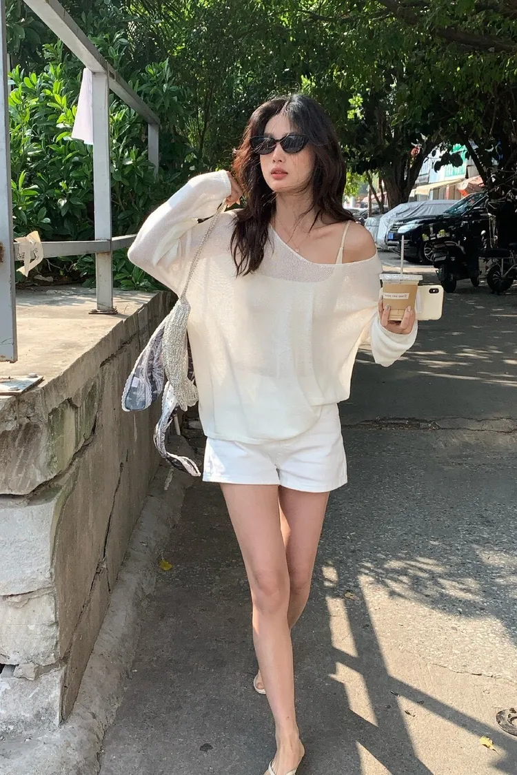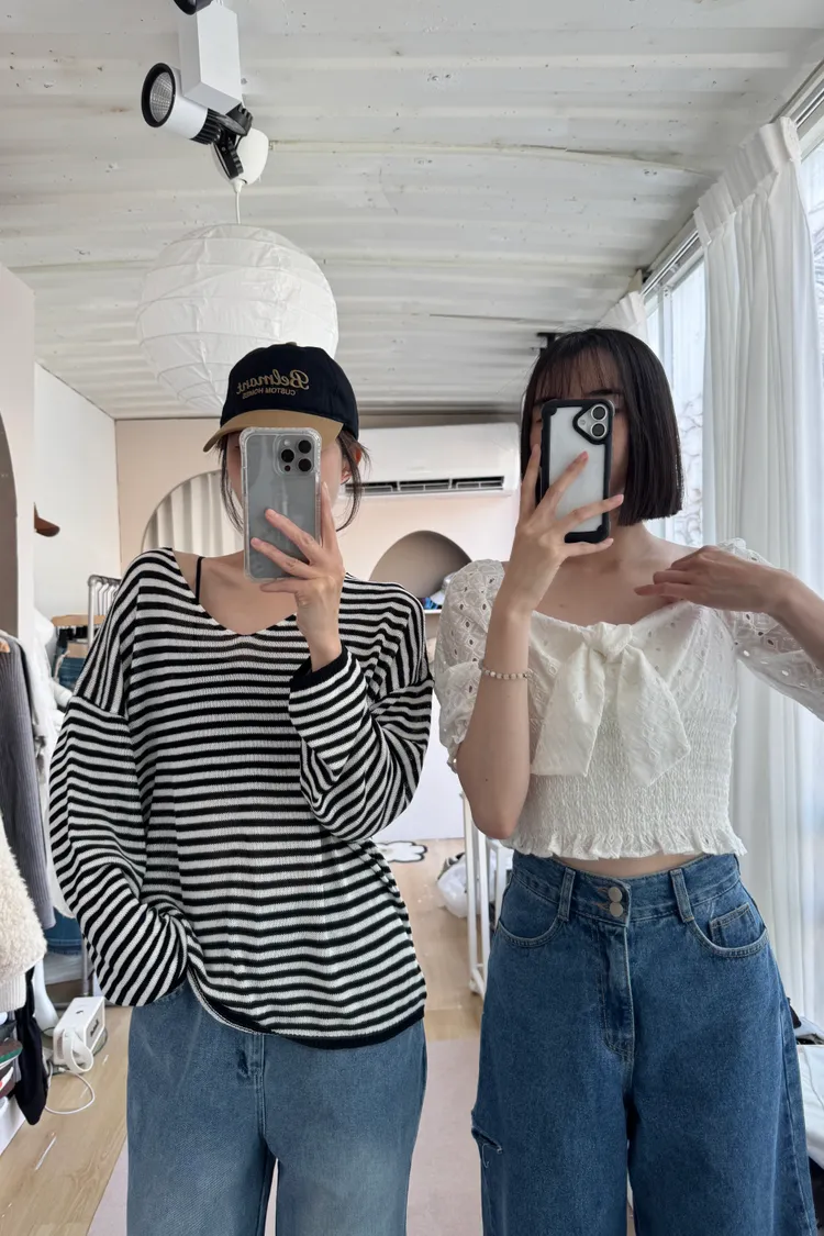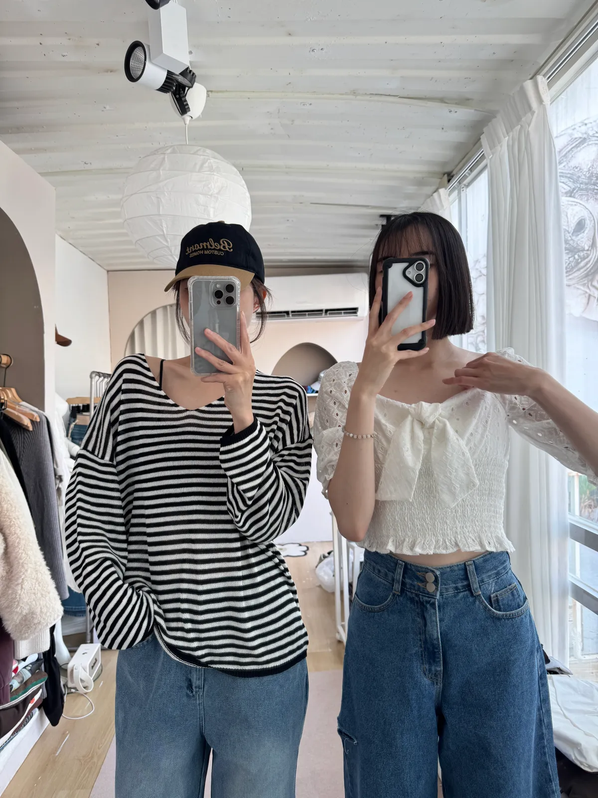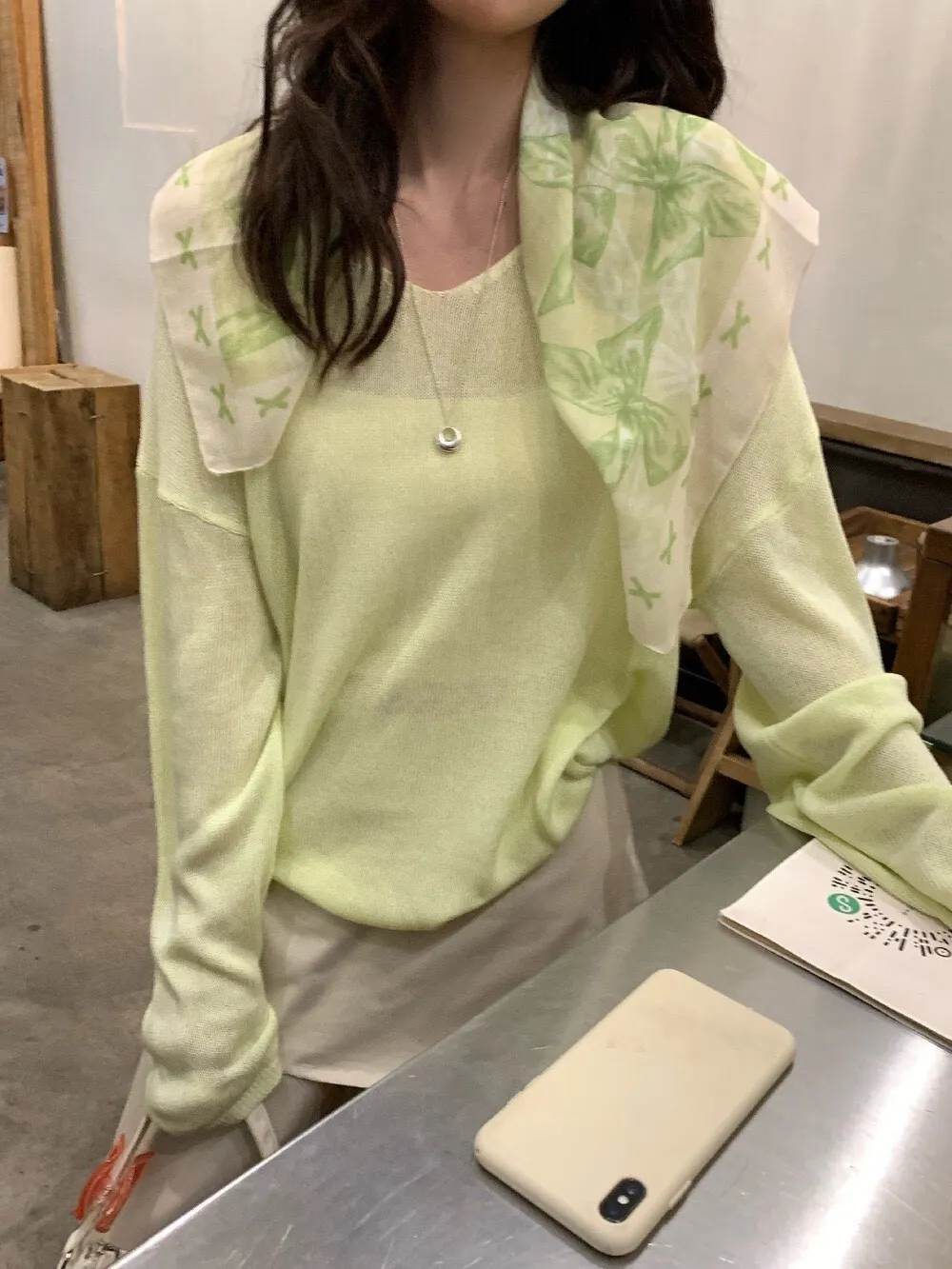 版型Ju顯瘦~溫柔慵懶V領寬松套頭針織衫