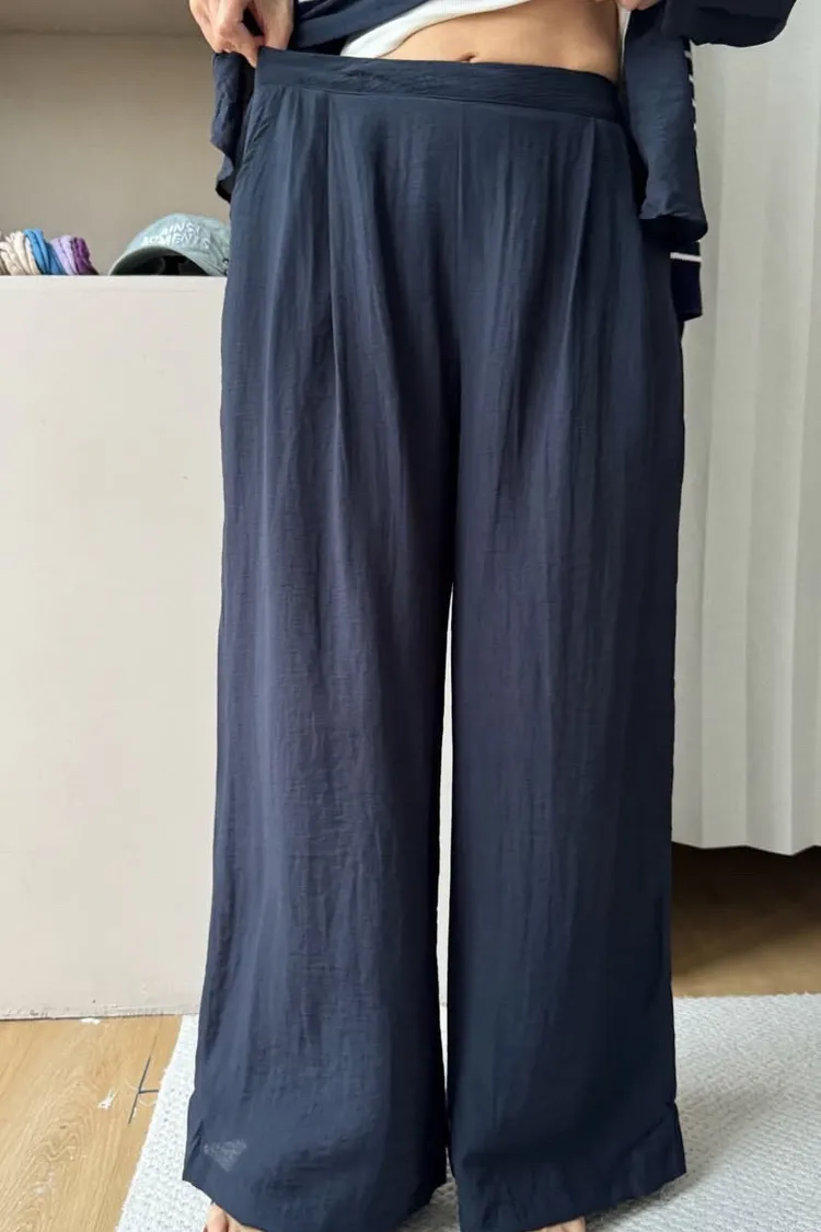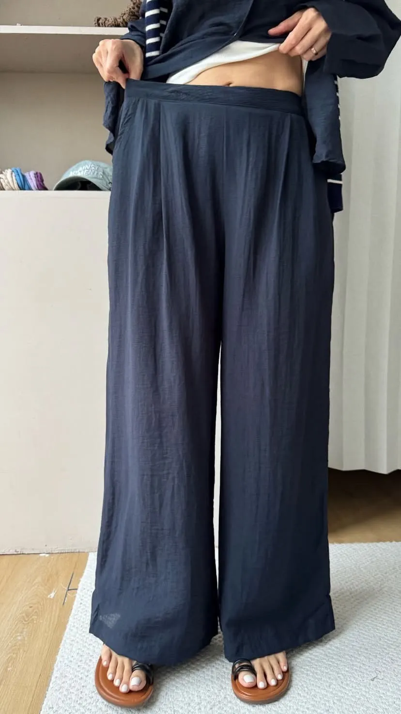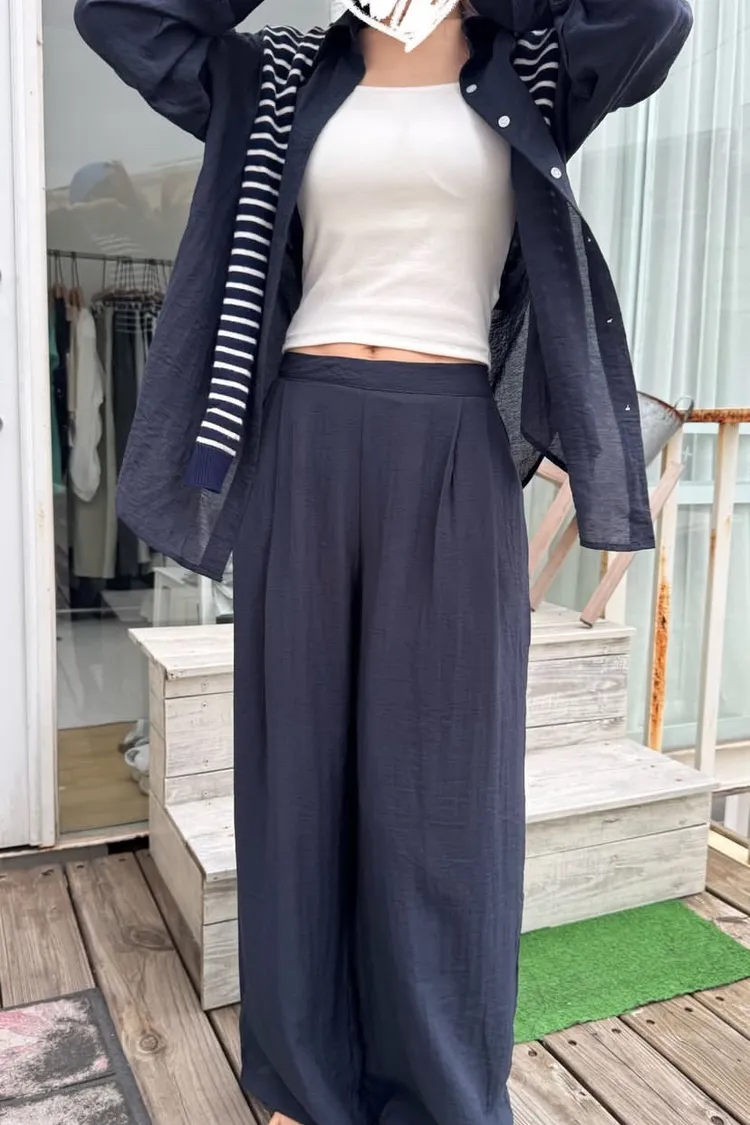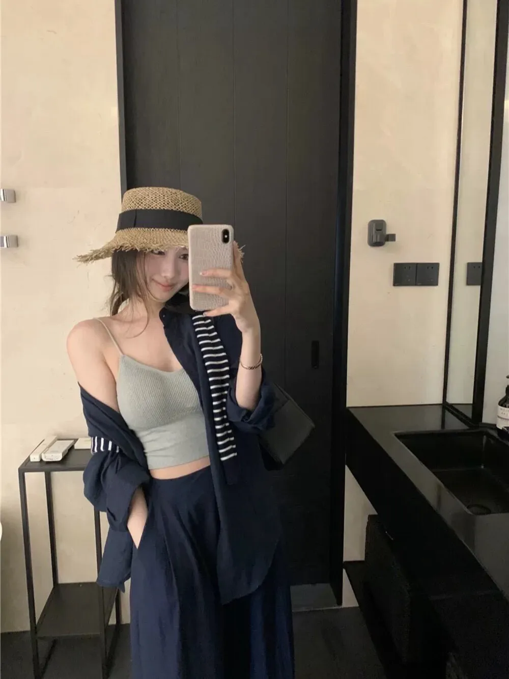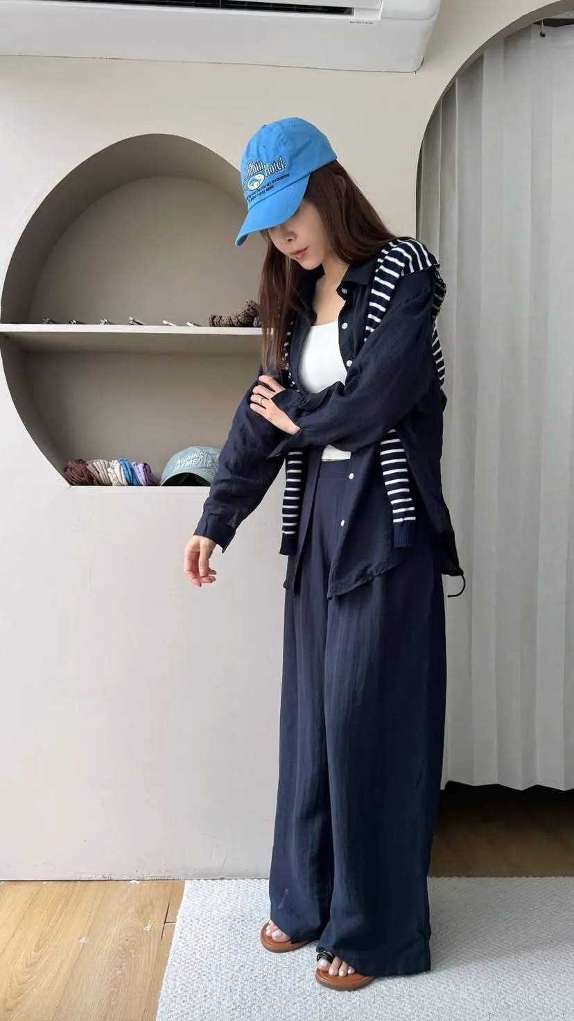 拼接條紋披肩襯衣寬松休閒百搭上衣襯衫+休閒褲套裝(配披肩)