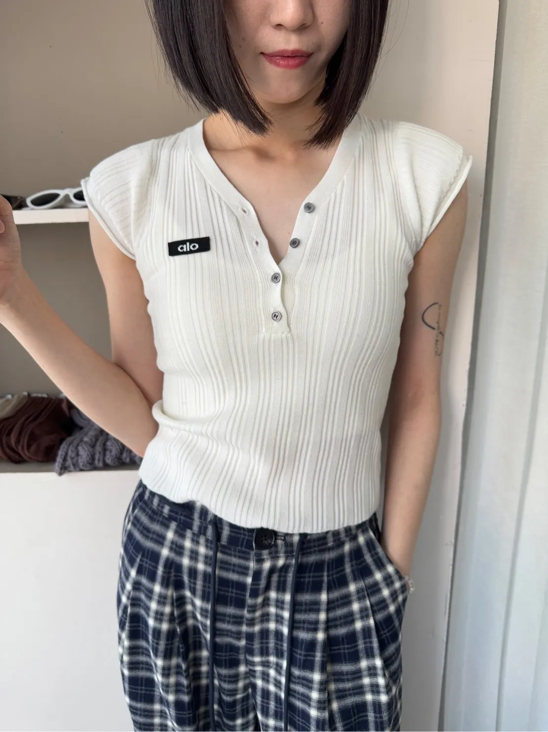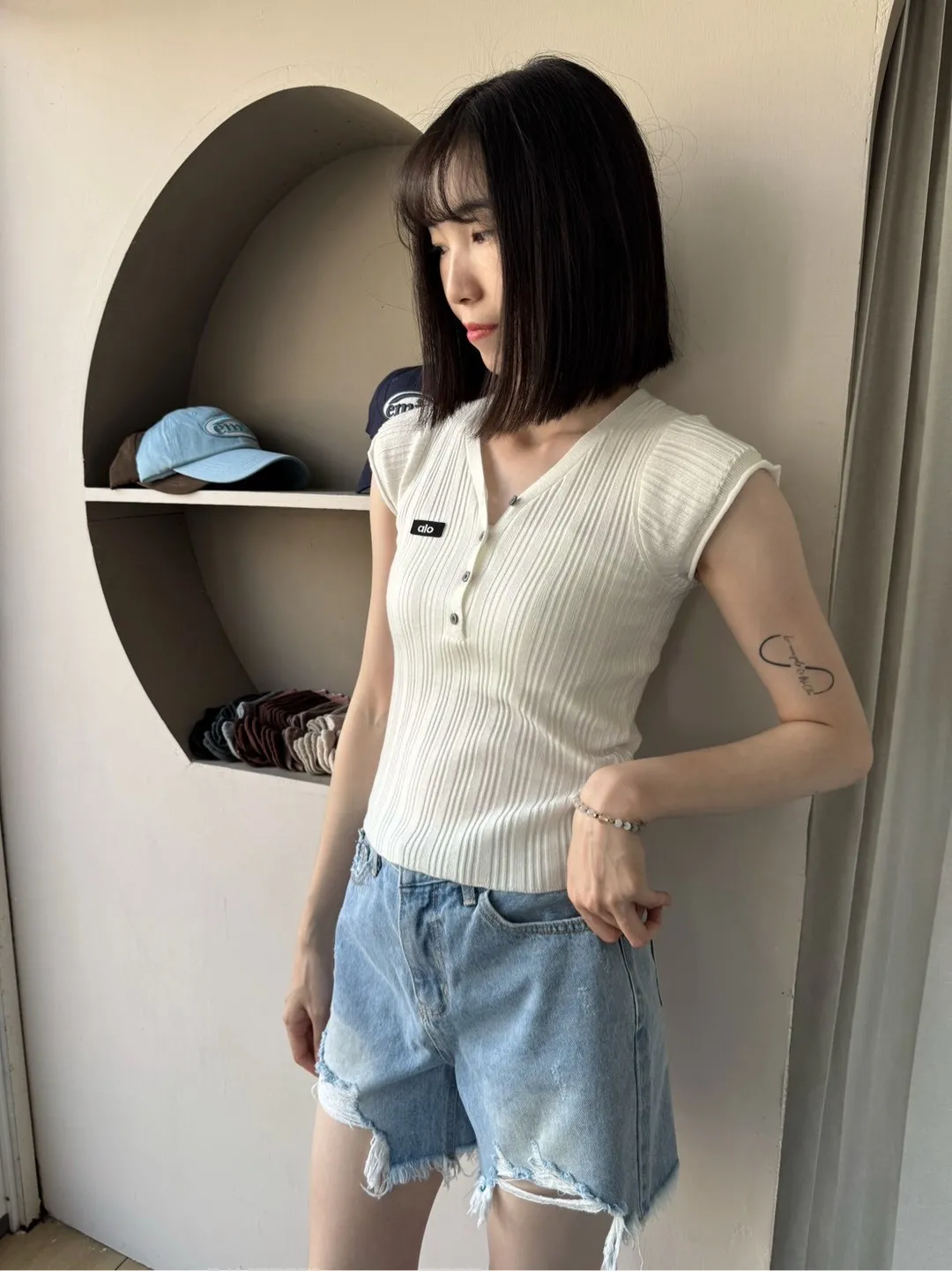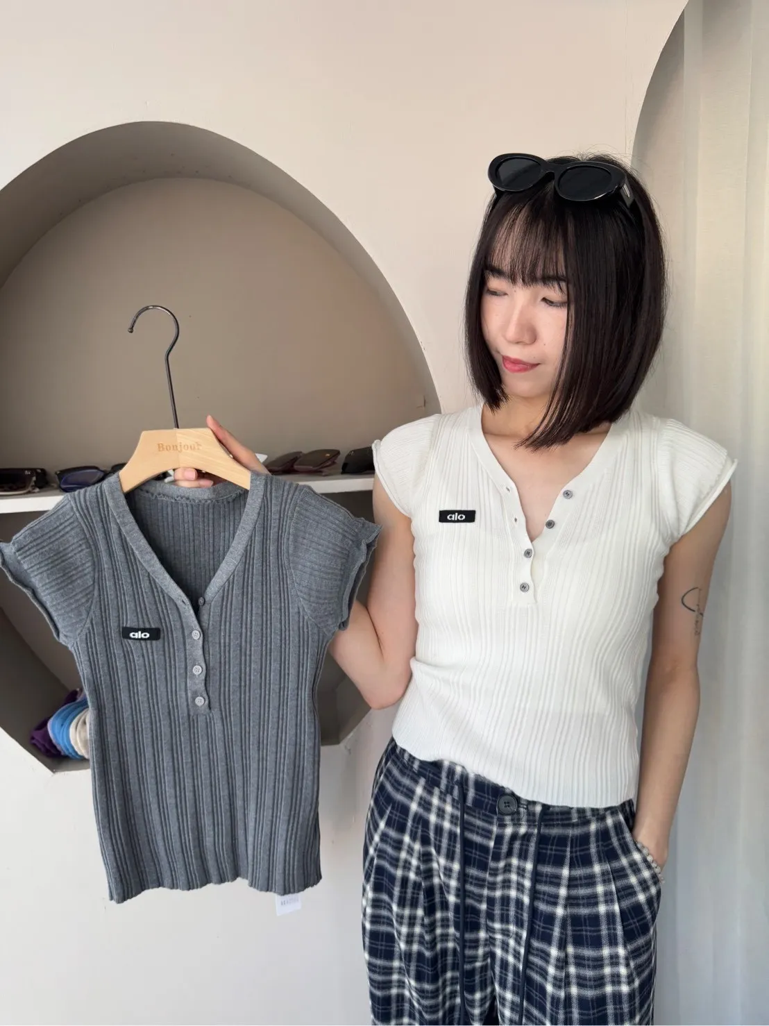 為了讓大家可以參考不同身形穿搭起來的感覺,本站會有實品拍攝及廠商照 如無法接受網路購物皆會有少許色差請自行衡量再做下單謝謝!! ●選擇店取的客人,務必下單後主動截圖訂單到官方LINE聯繫我們,這樣我們才可以到貨通知您來店取貨唷。 下單前須確實詳讀 本文內容 及 訂購須知(請點進去詳閱唷) 可接受者再下單,如下單即為同意以上需知!! 商品特色薄料細針的開扣深v上衣俐落的微性感現在全世界都愛的甜辣瘋!