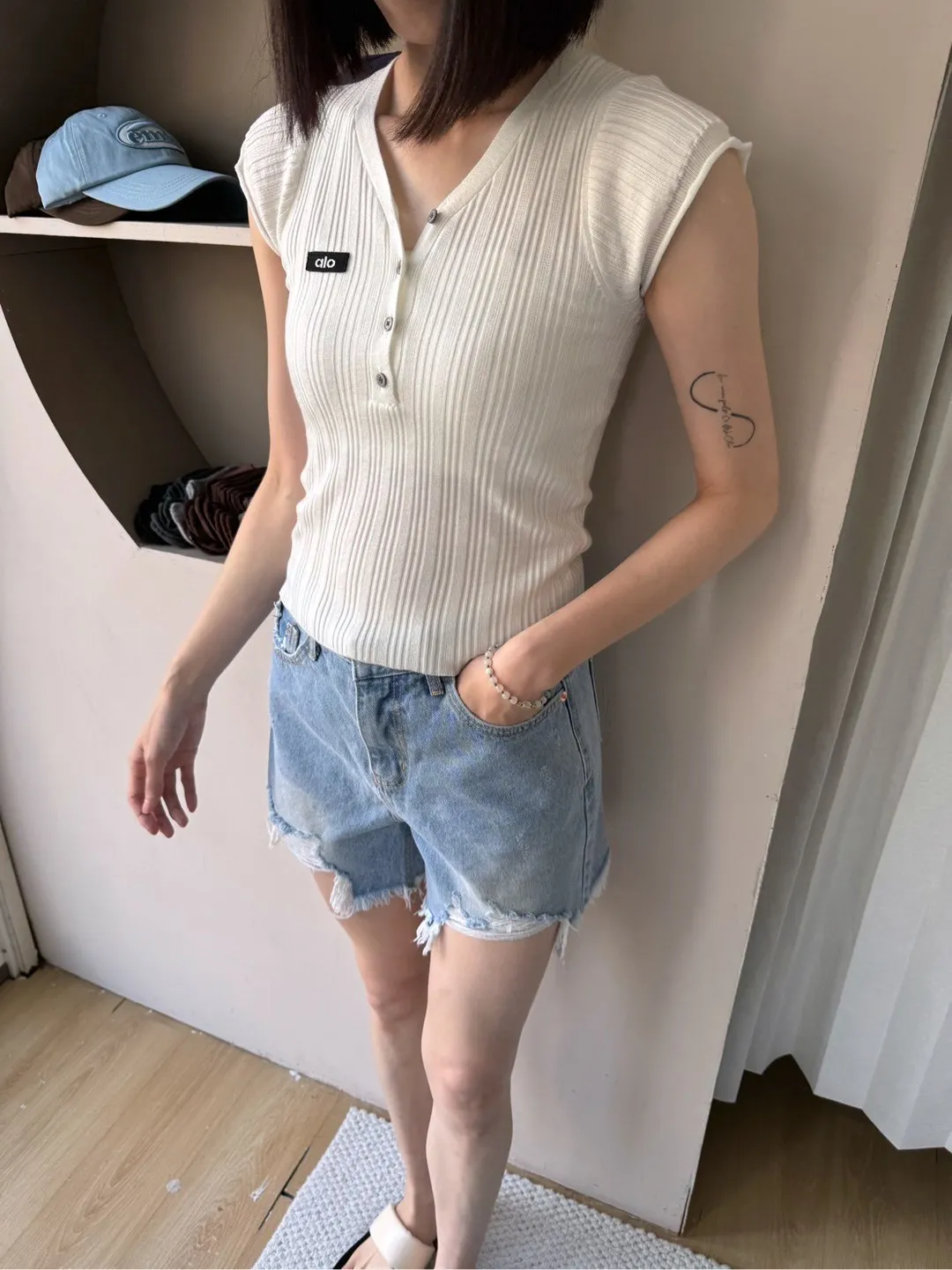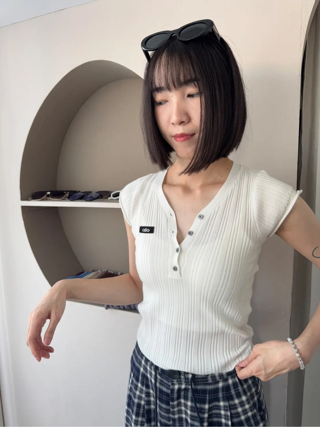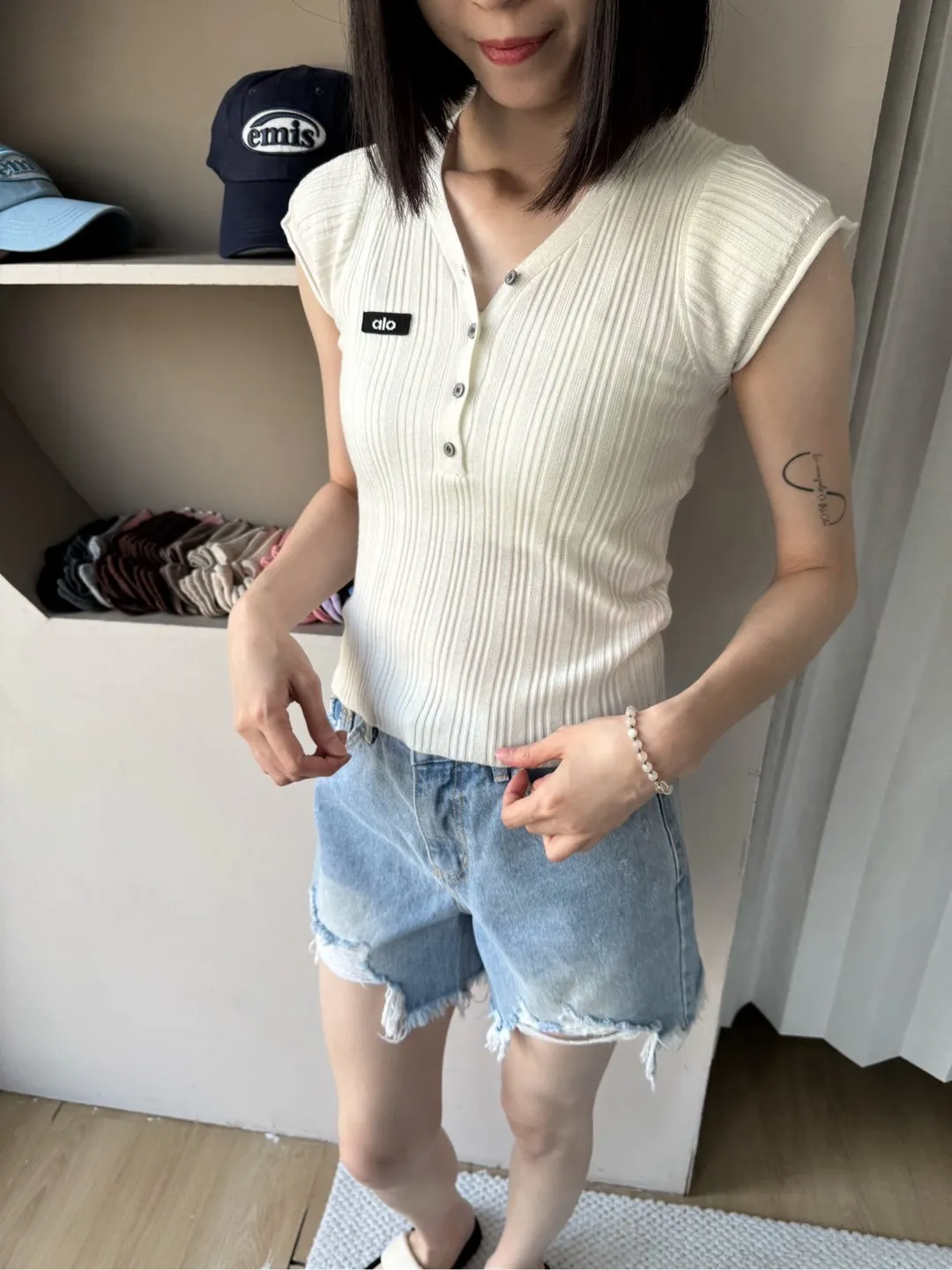 為了讓大家可以參考不同身形穿搭起來的感覺,本站會有實品拍攝及廠商照 如無法接受網路購物皆會有少許色差請自行衡量再做下單謝謝!! ●選擇店取的客人,務必下單後主動截圖訂單到官方LINE聯繫我們,這樣我們才可以到貨通知您來店取貨唷。 下單前須確實詳讀 本文內容 及 訂購須知(請點進去詳閱唷) 可接受者再下單,如下單即為同意以上需知!! 商品特色薄料細針的開扣深v上衣俐落的微性感現在全世界都愛的甜辣瘋!