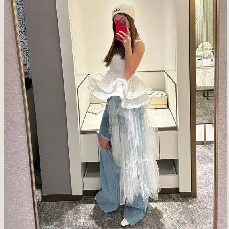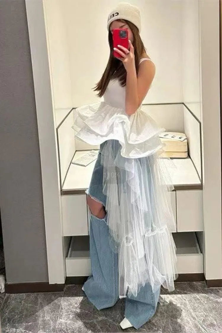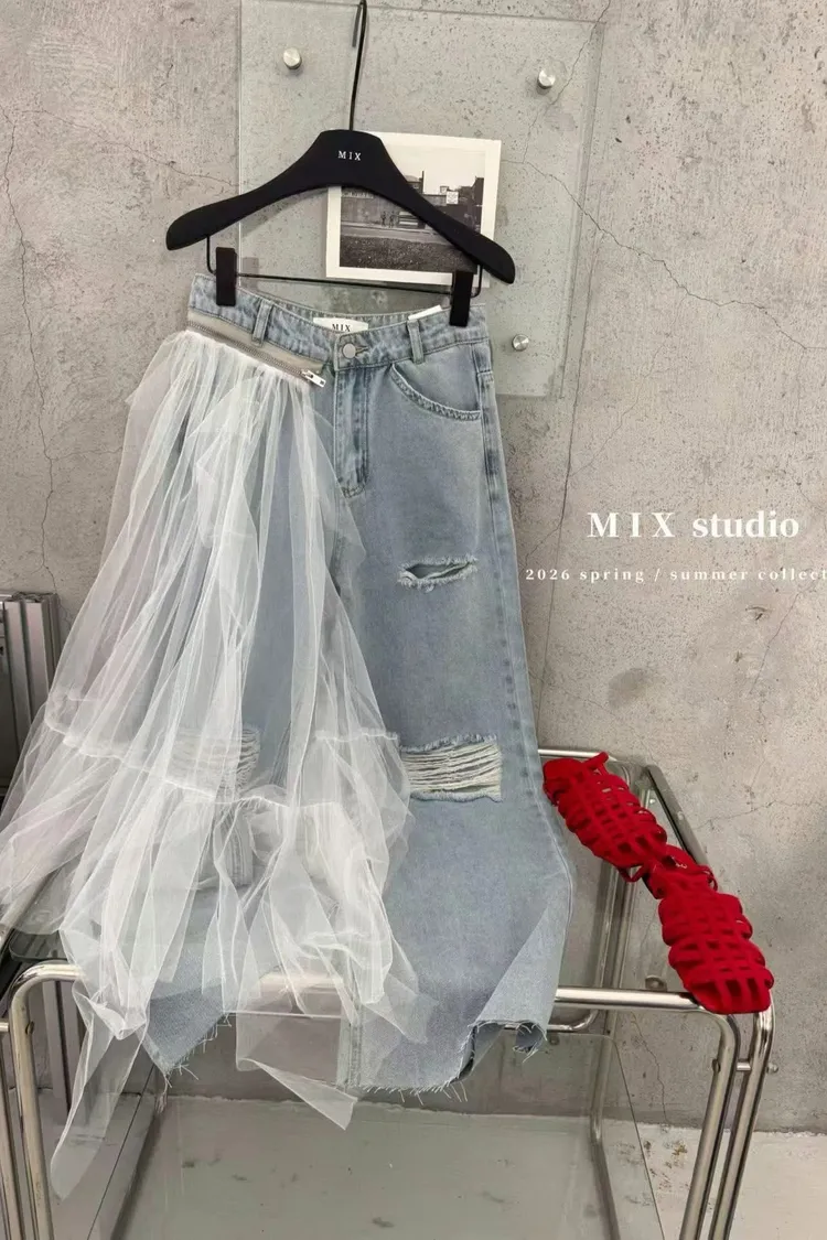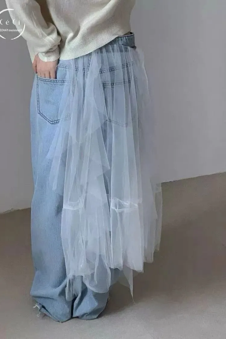 📩🪄🎈仙女🧚♀️般的浪漫💕派紗裙牛仔褲,大愛大愛的要趕緊+1氛圍感真的直接拉🈵的一條褲子!